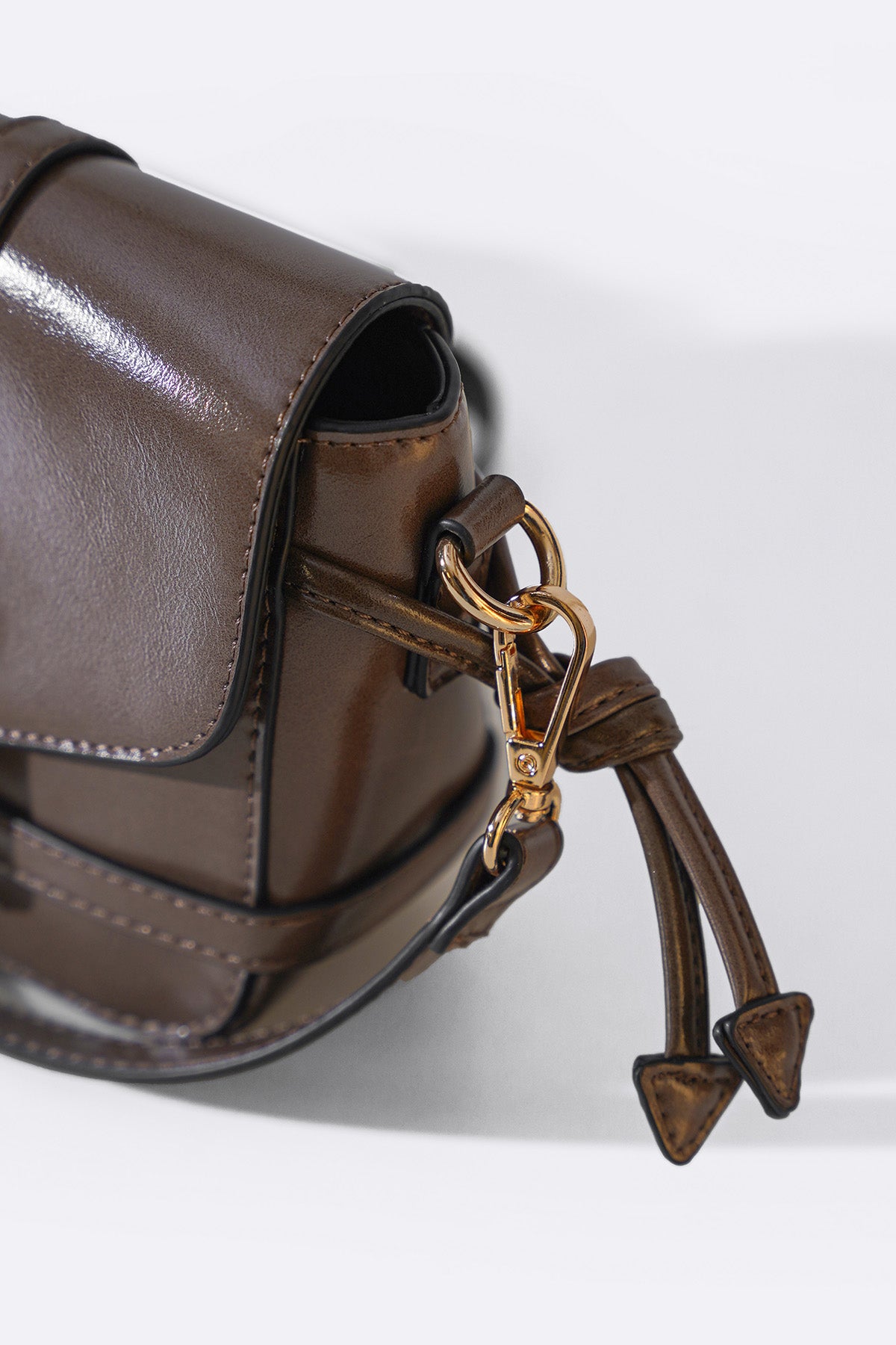 Butter soft crossbody bag with gold accessories, a magnetic snap button closure and two inner pockets to hold your belongings. The long strap is adjustable and detachable.
