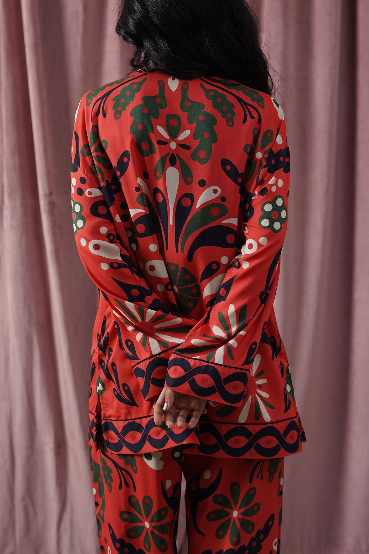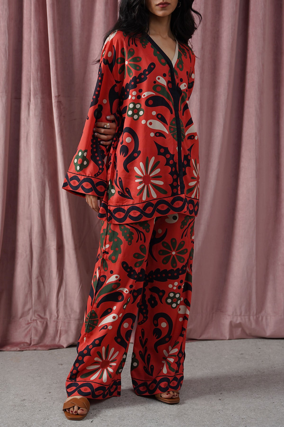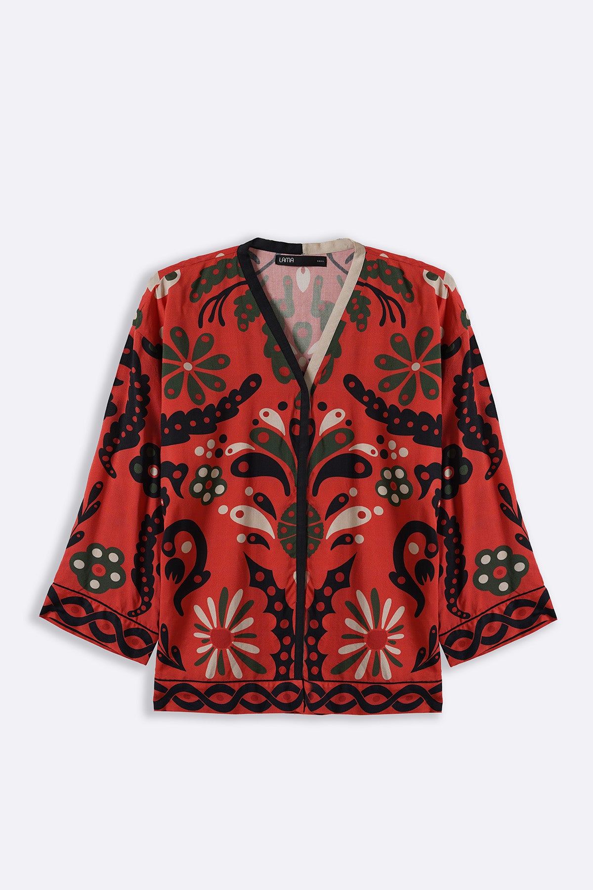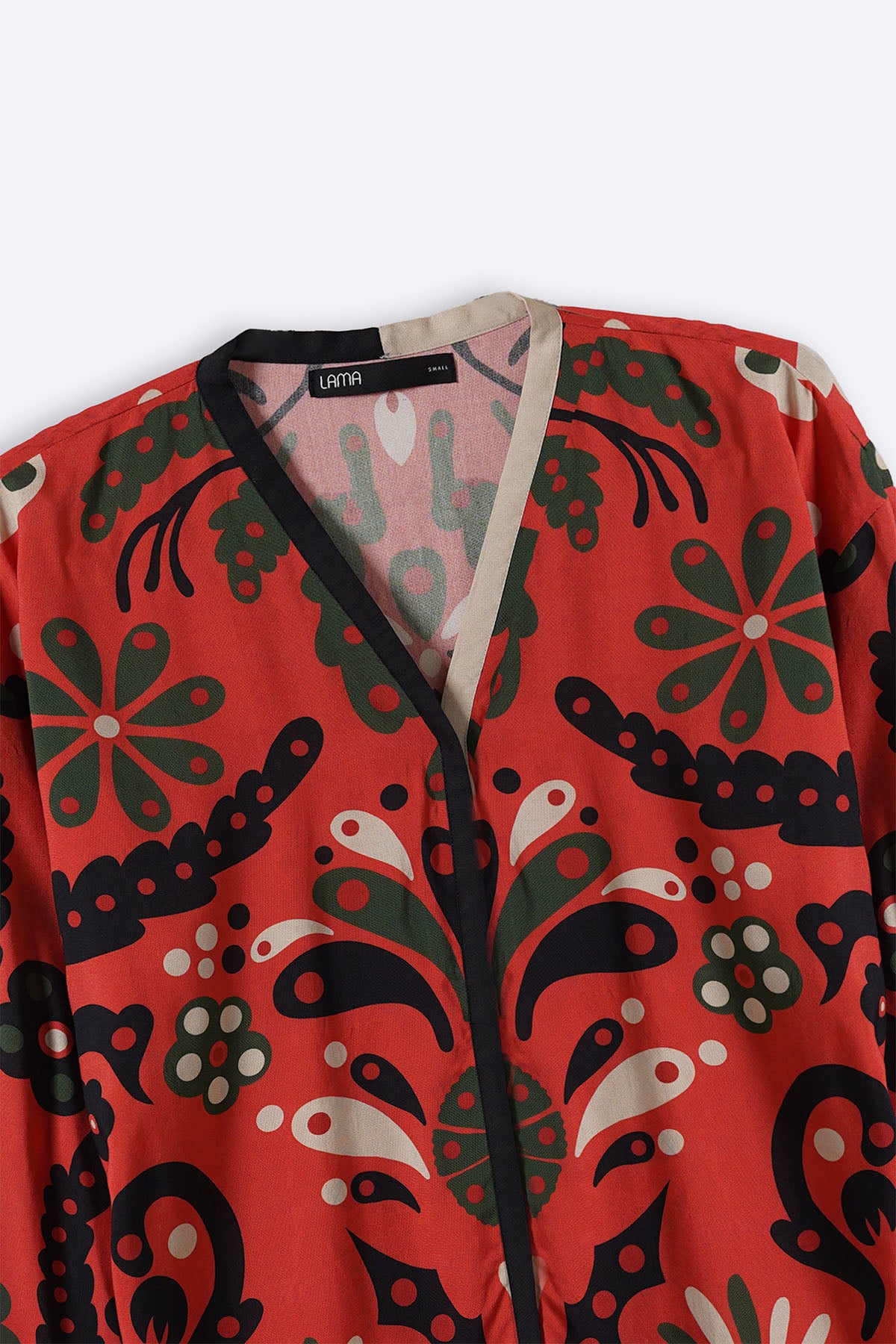 Design details: Printed blouse with full sleeves and a V-neckline with contrast detailing.