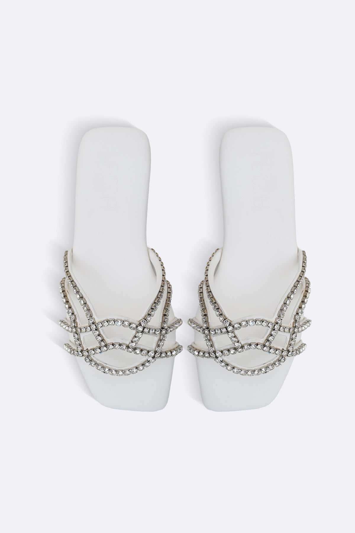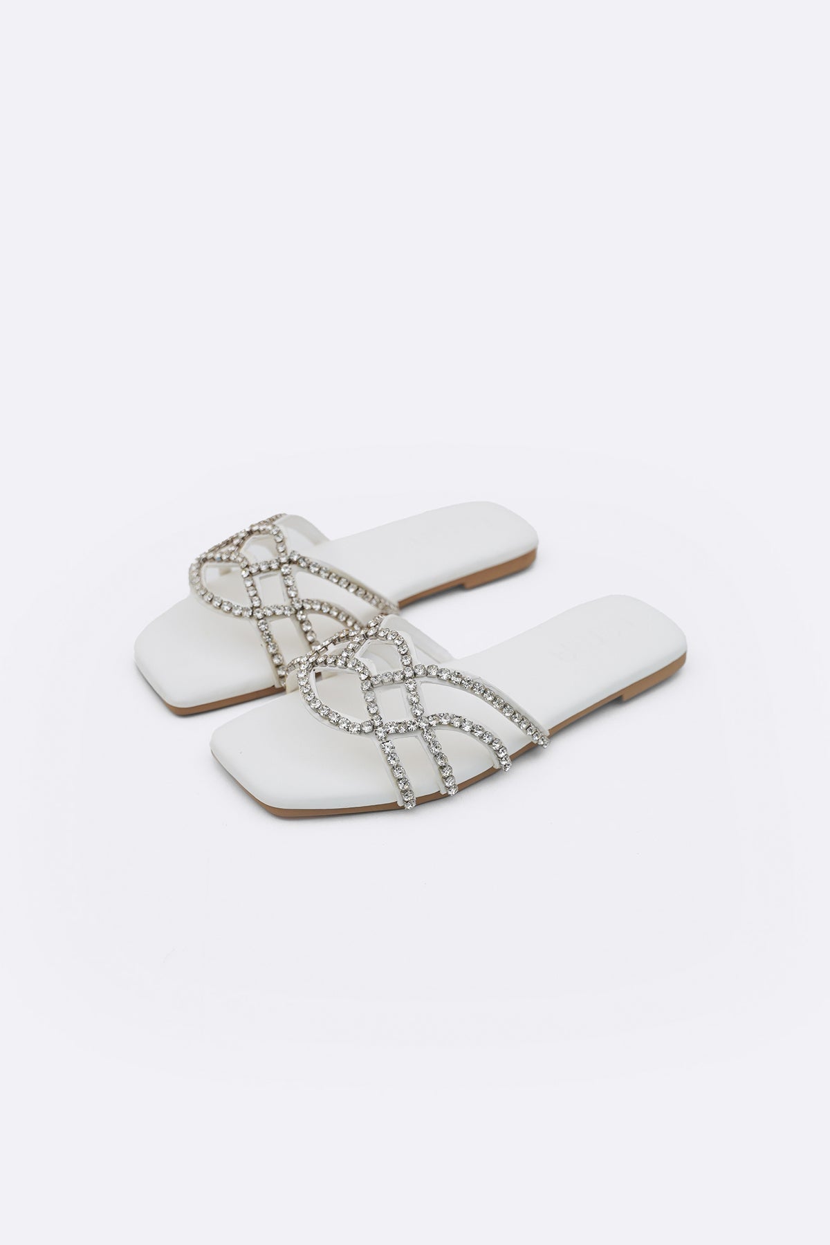 Soft crystal studded festive slides with cushioned insole and anti-slip outsole.