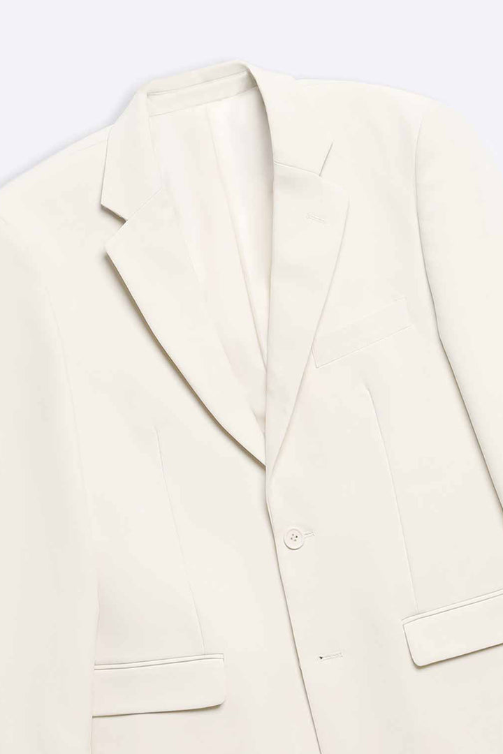 Design details: Single-breasted, two-button tailored fit blazer. Notch lapel, functional chest, and flap pockets with a double rear vent
