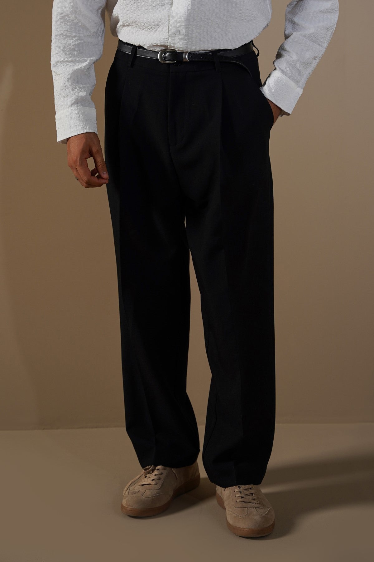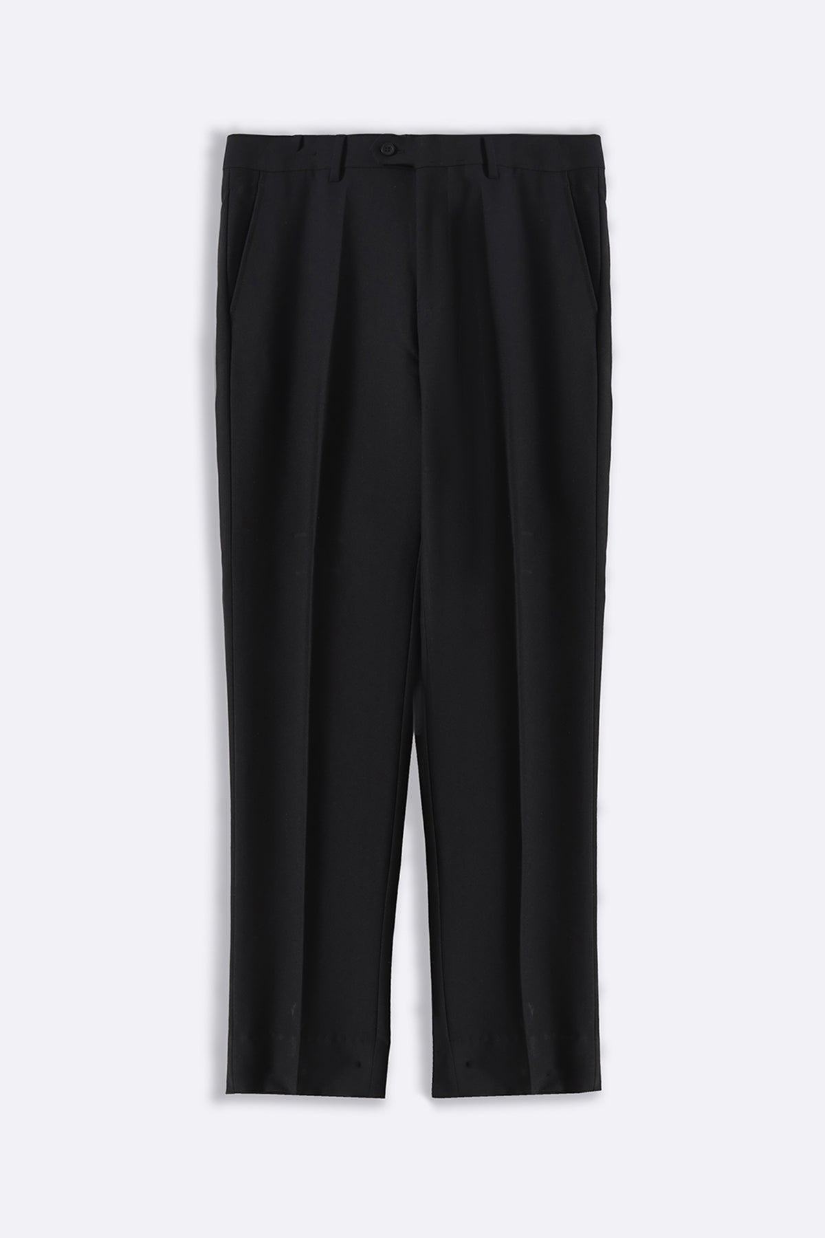 Design details: Straight fit classic suit trousers. Two side and two rear welt pockets, hidden fly with a nylon zip
