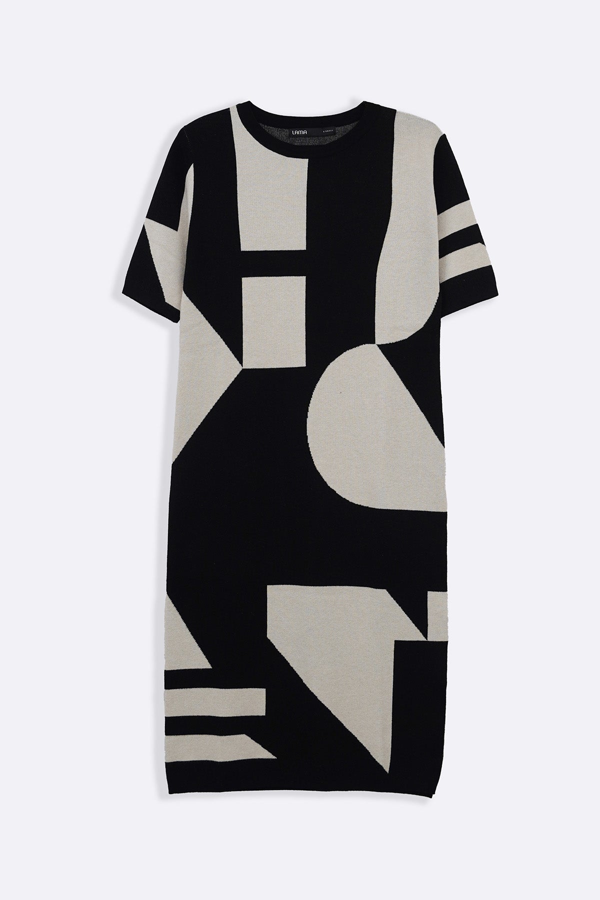 Design details: Seamless dress with crew neckline and half sleeves along with ribbed trims and side vents.
