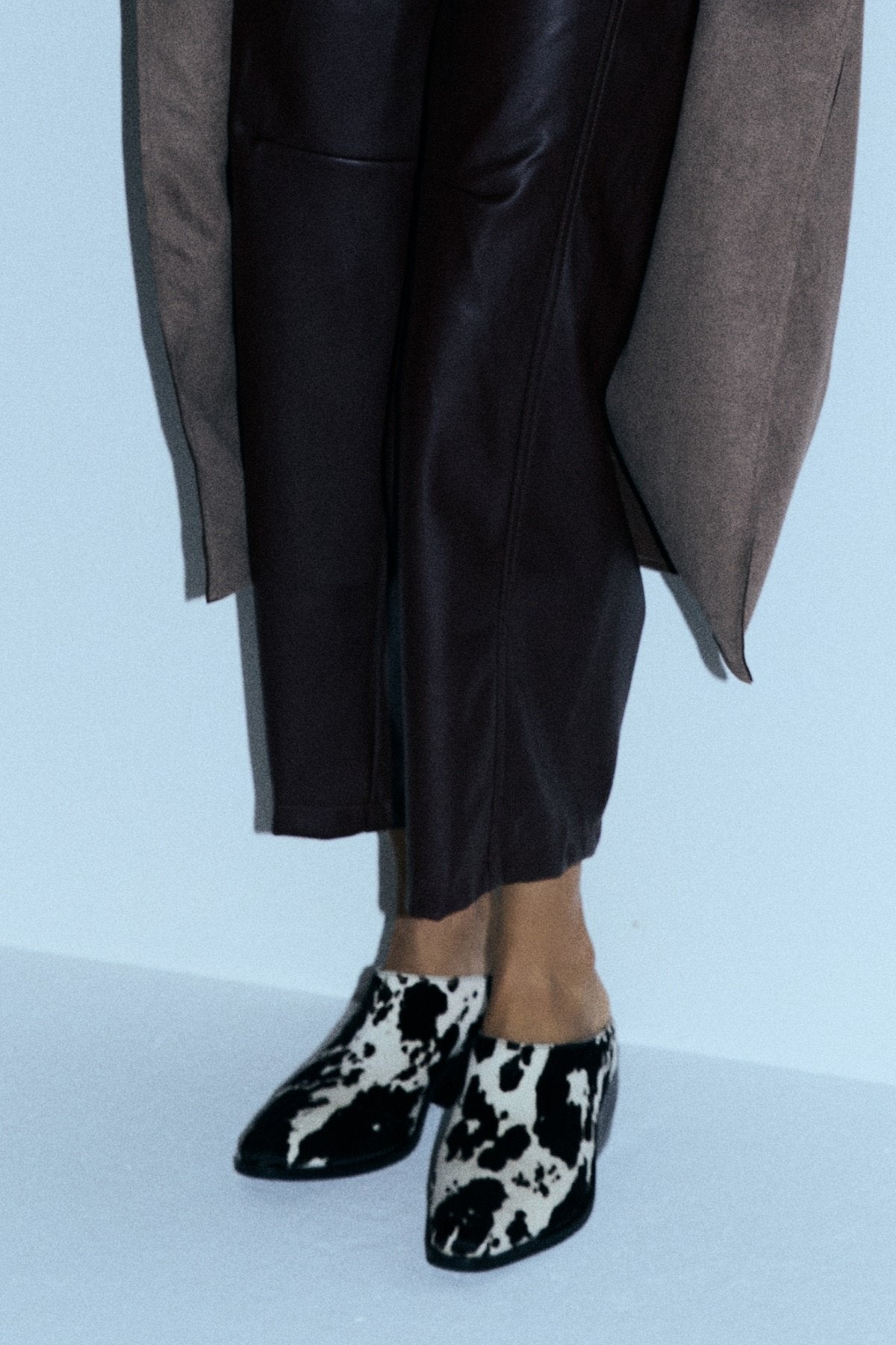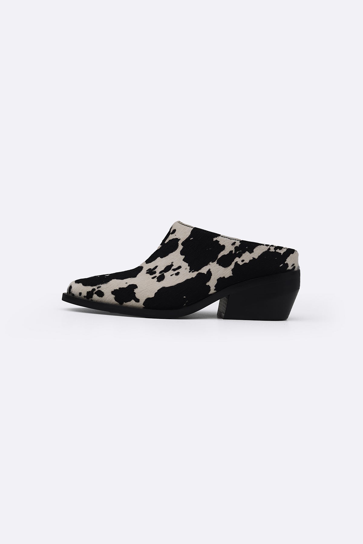 Genuine leather boot mules with animal faux pony fur, soft insole and anti-slip outsole.