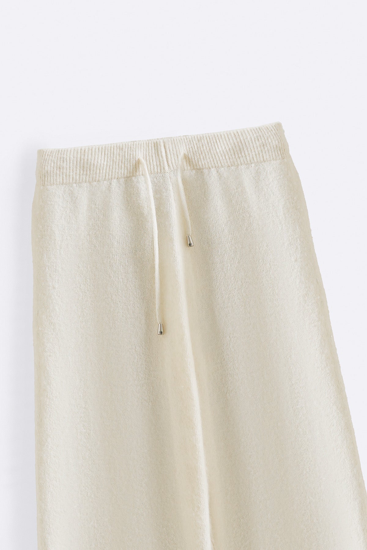 Design details: Wide leg pants with elasticated waist band and drawcord with metallic tipping.