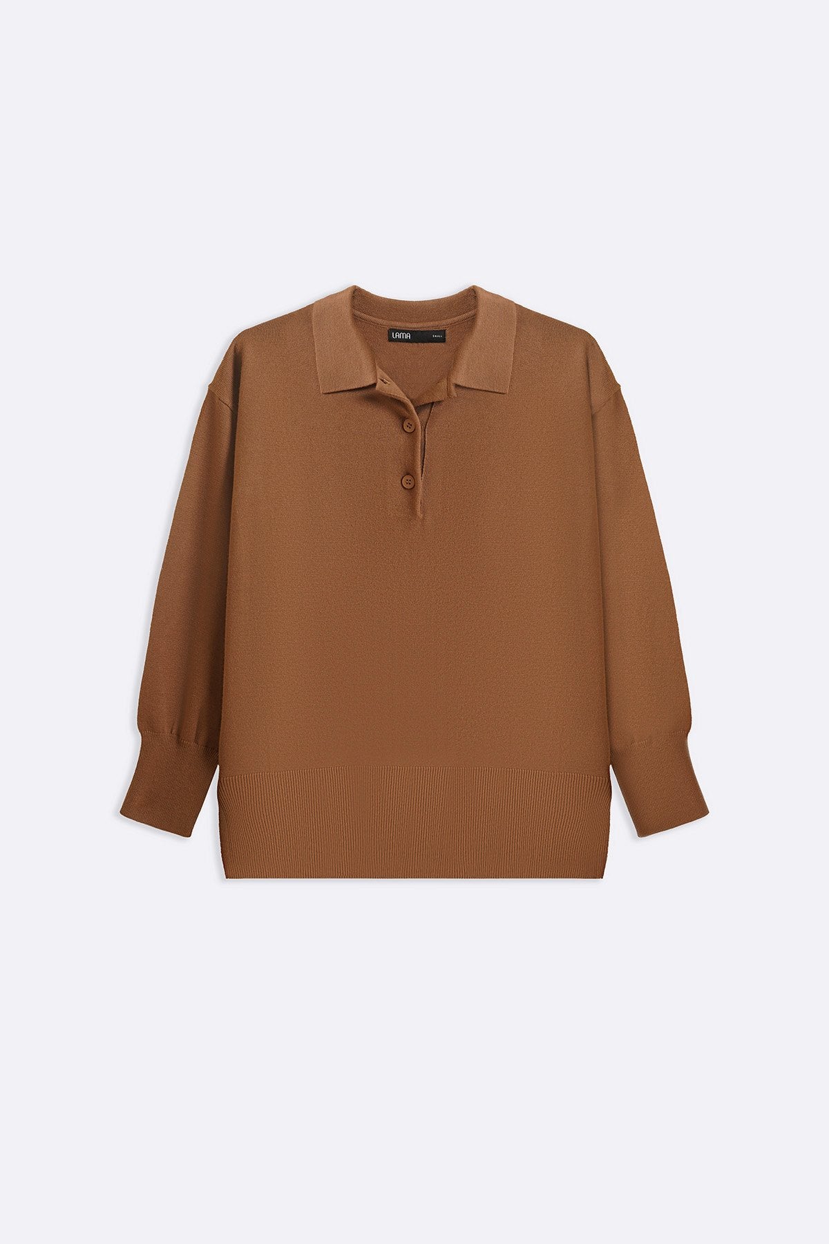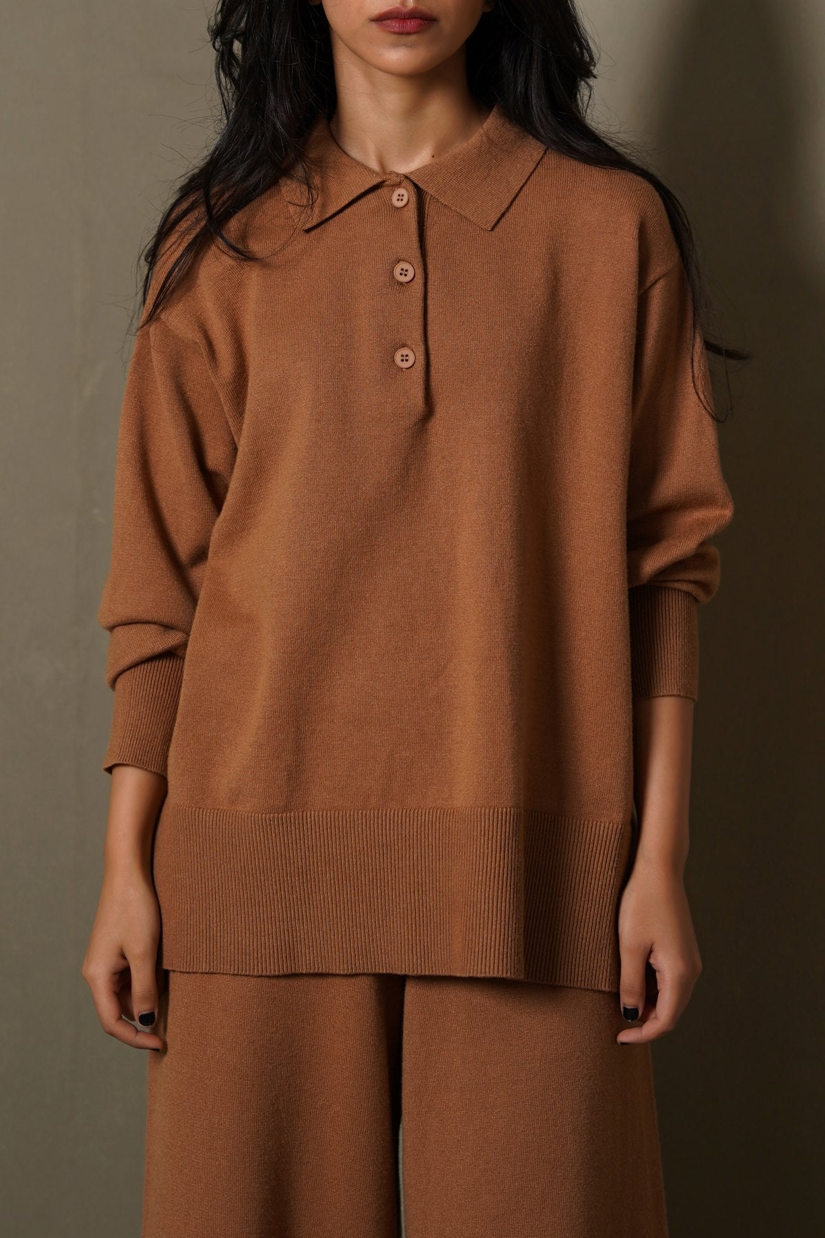 Design details: Collared shirt with front button fastening along with side vents and cuffed long sleeves.