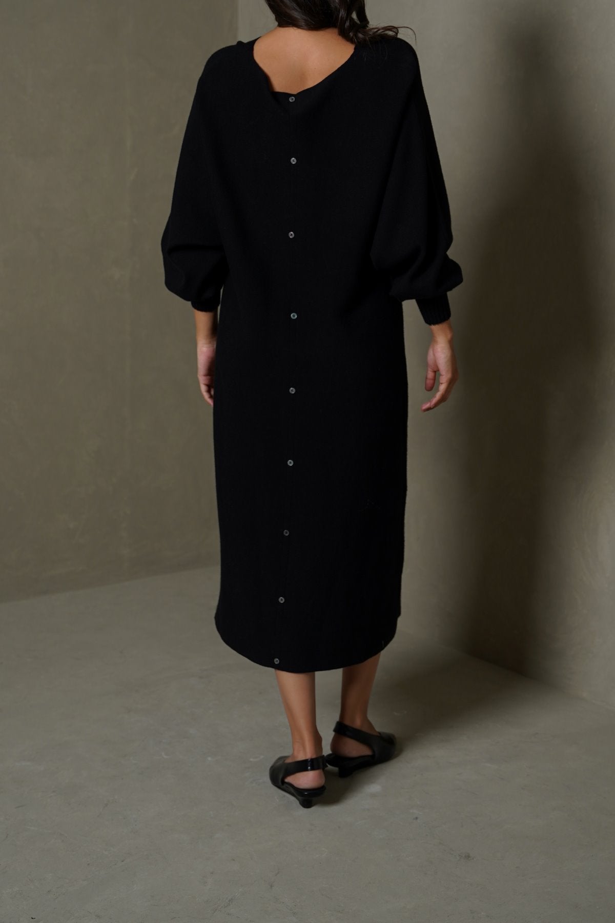 Design details: Seamless crew neckline and bottom hem with faux button at the back along with loose, soft cuffed sleeves.