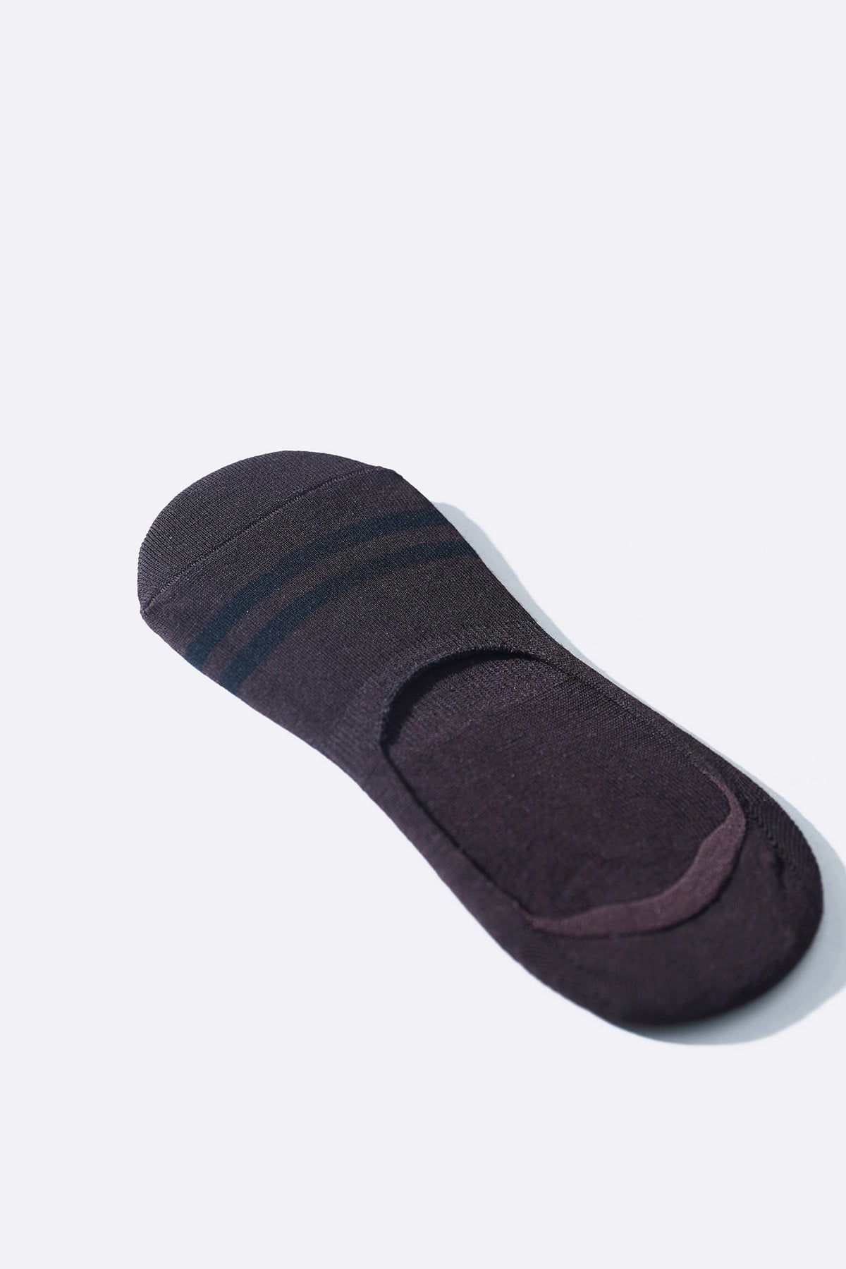 Smooth cotton blend mercerized no show socks featuring fine contrast stripes.