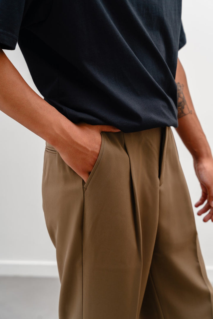 Design detail: Adjustable pants with elasticated waistband and front pleat