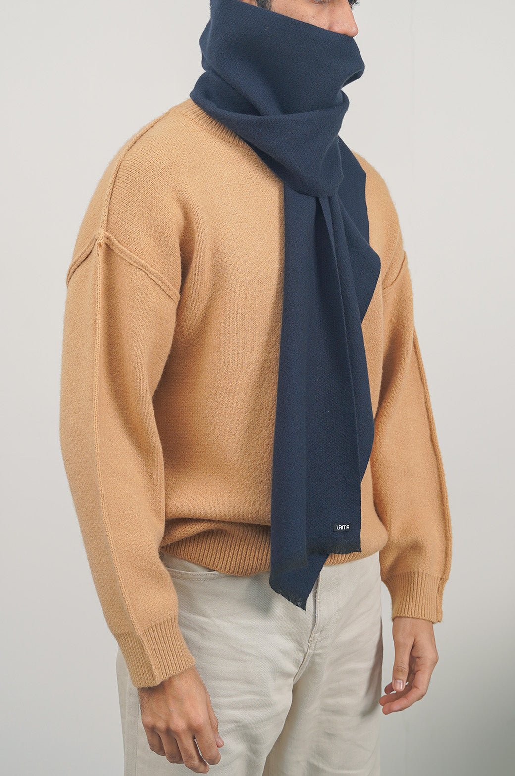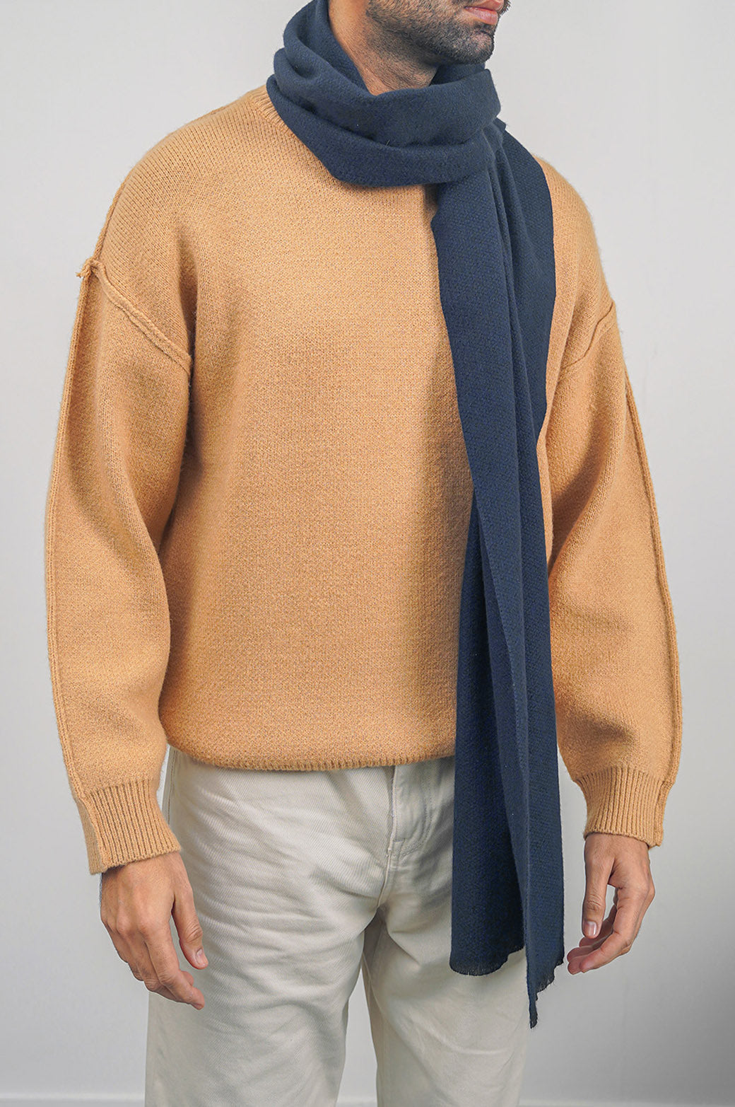 Lightweight, lightly textured and super soft woven scarf with contrasting hem fringes.