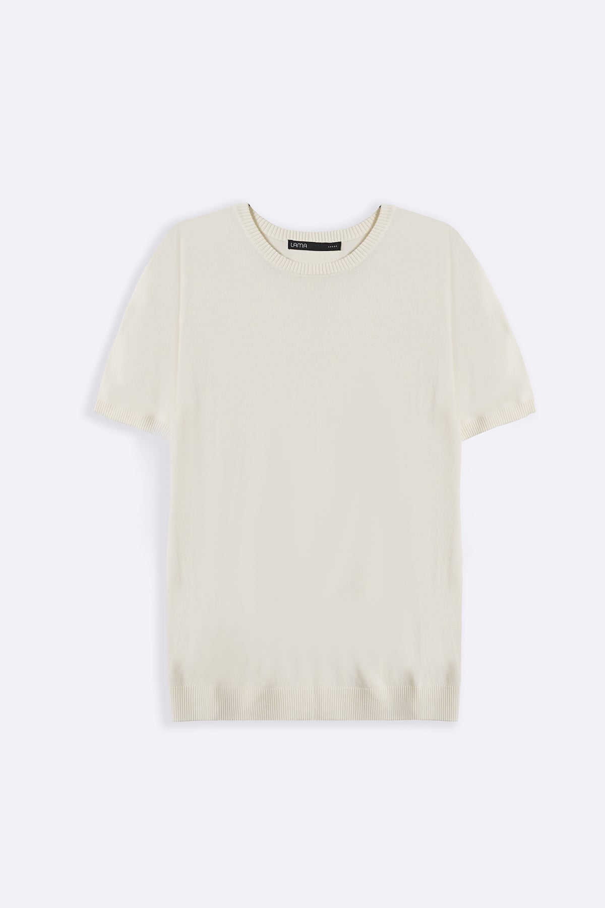 Design details: Crew neck t-shirt featuring ribbed detail on neck,cuffs and hem.