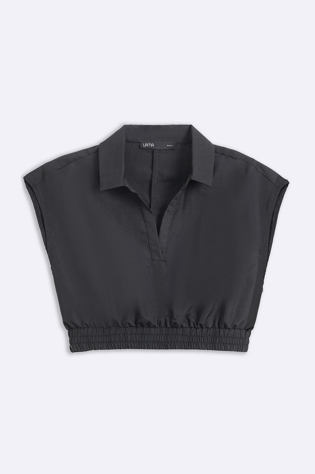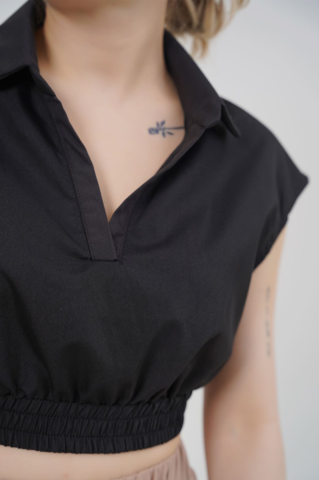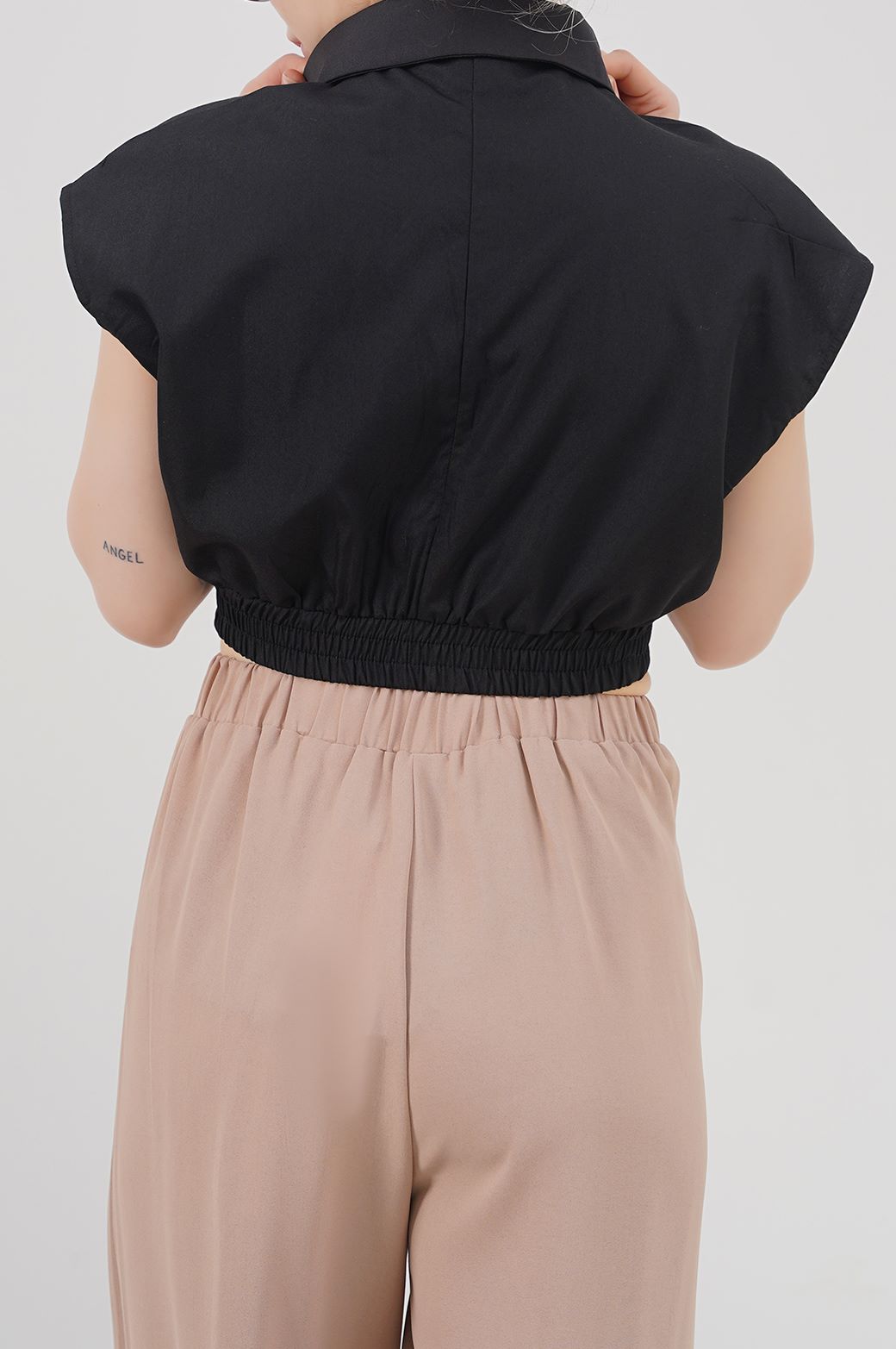 Fit type: Regular fit Design details: Elasticated hem for a fitted look, crop style Stretch: None Transparency: Medium in white color Hand feel: Soft Lining: None Material: 80% polyester, 20% cotton Size: The model is 162.56 cm/5'4" and wears a size SMALL Occasion: Daily casual