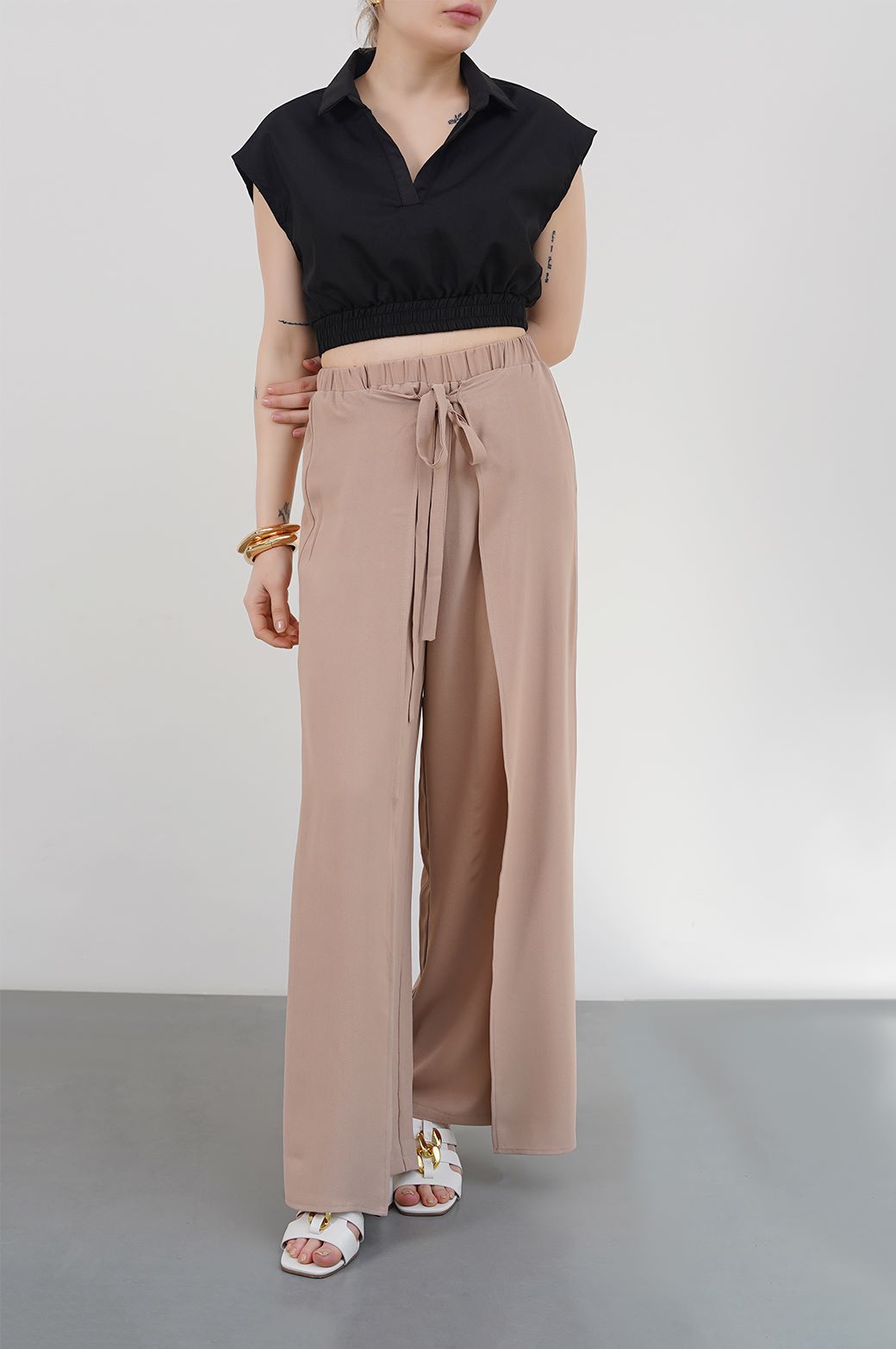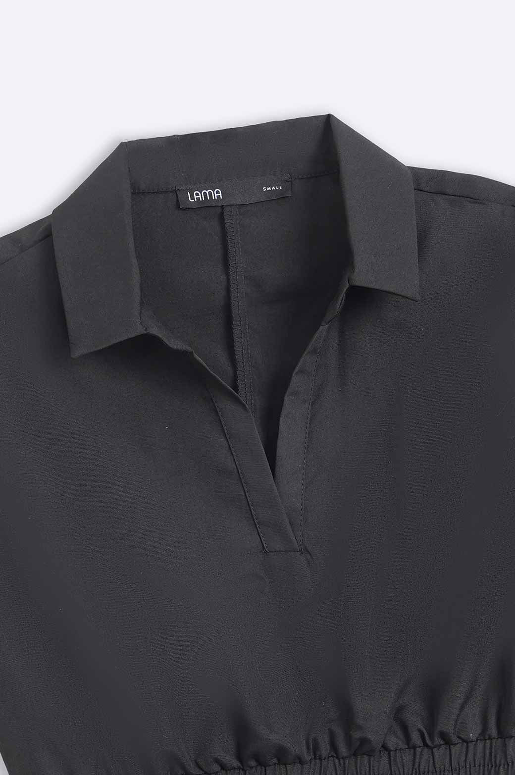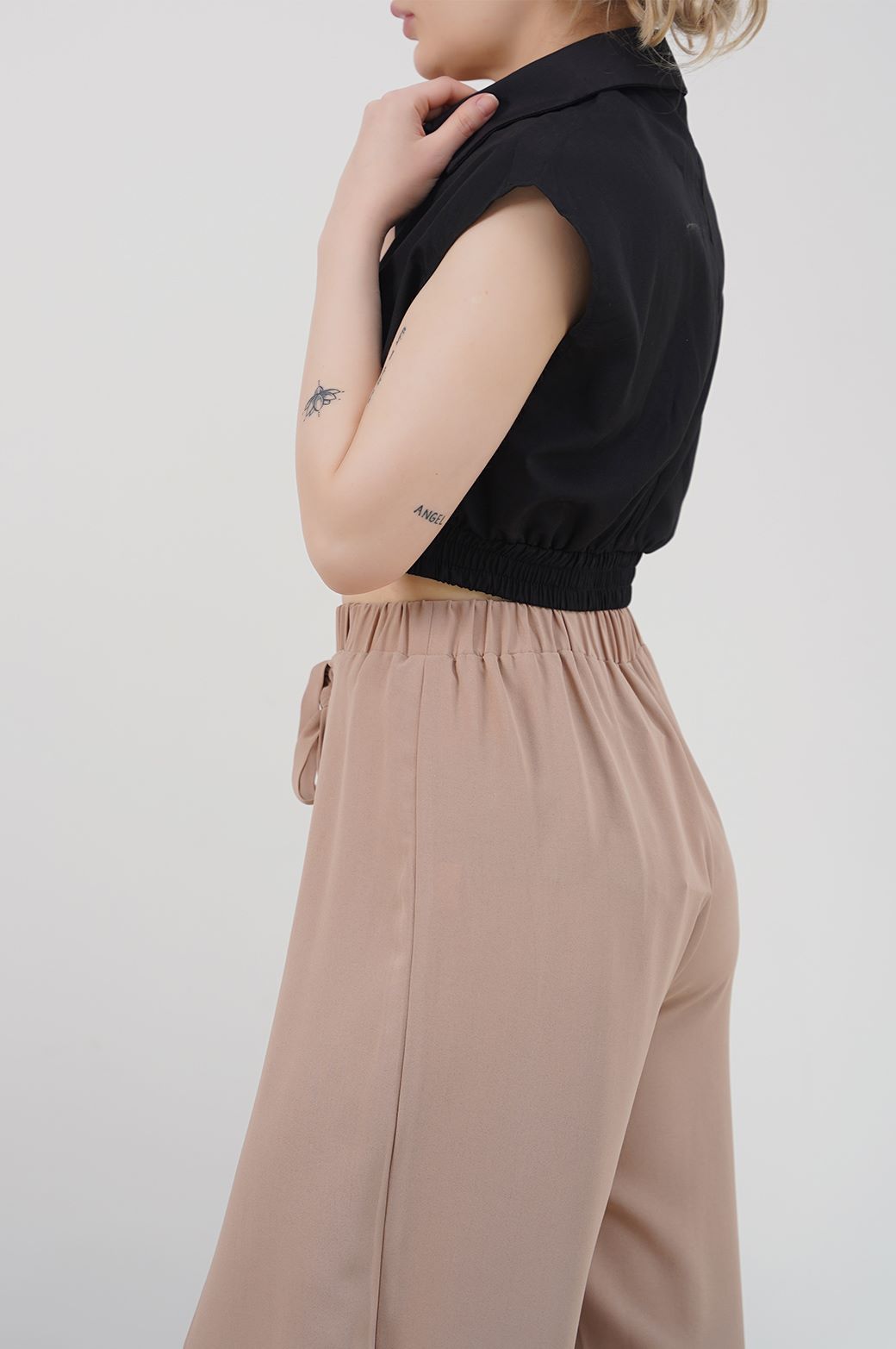 Fit type: Regular fit Design details: Elasticated hem for a fitted look, crop style Stretch: None Transparency: Medium in white color Hand feel: Soft Lining: None Material: 80% polyester, 20% cotton Size: The model is 162.56 cm/5'4" and wears a size SMALL Occasion: Daily casual