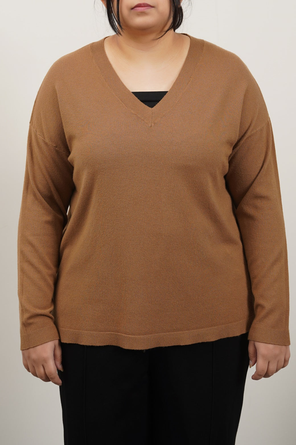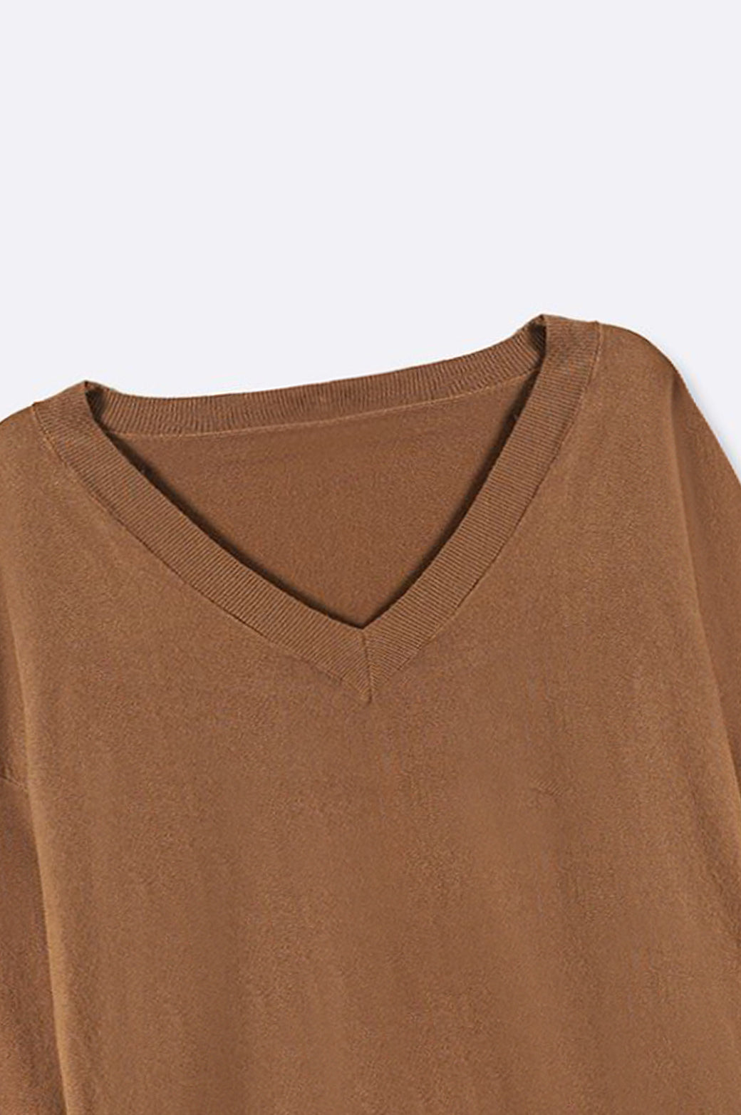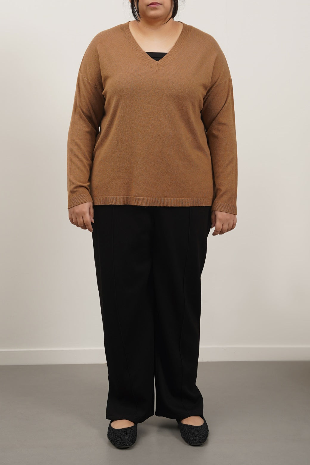 CAMEL CURVE HOMEBODY V-NECK SWEATER