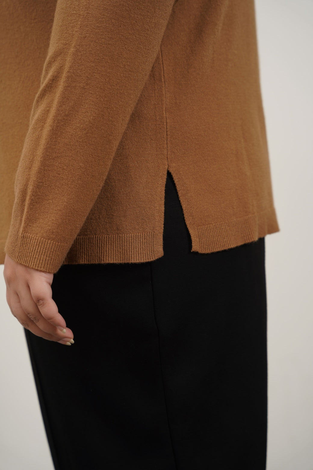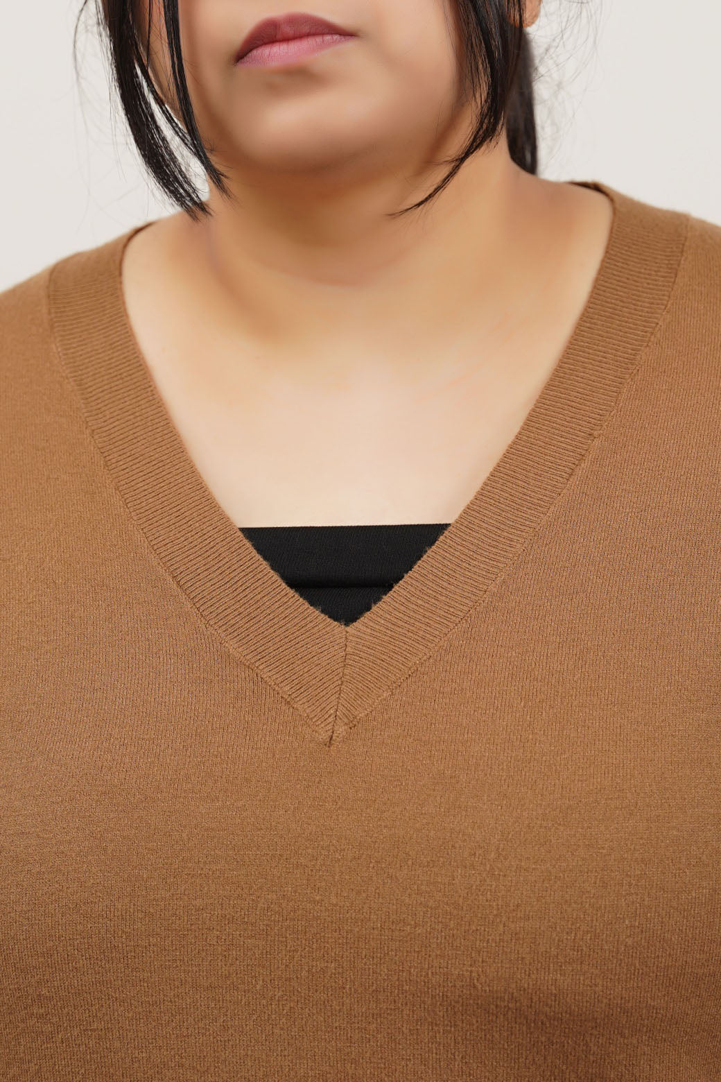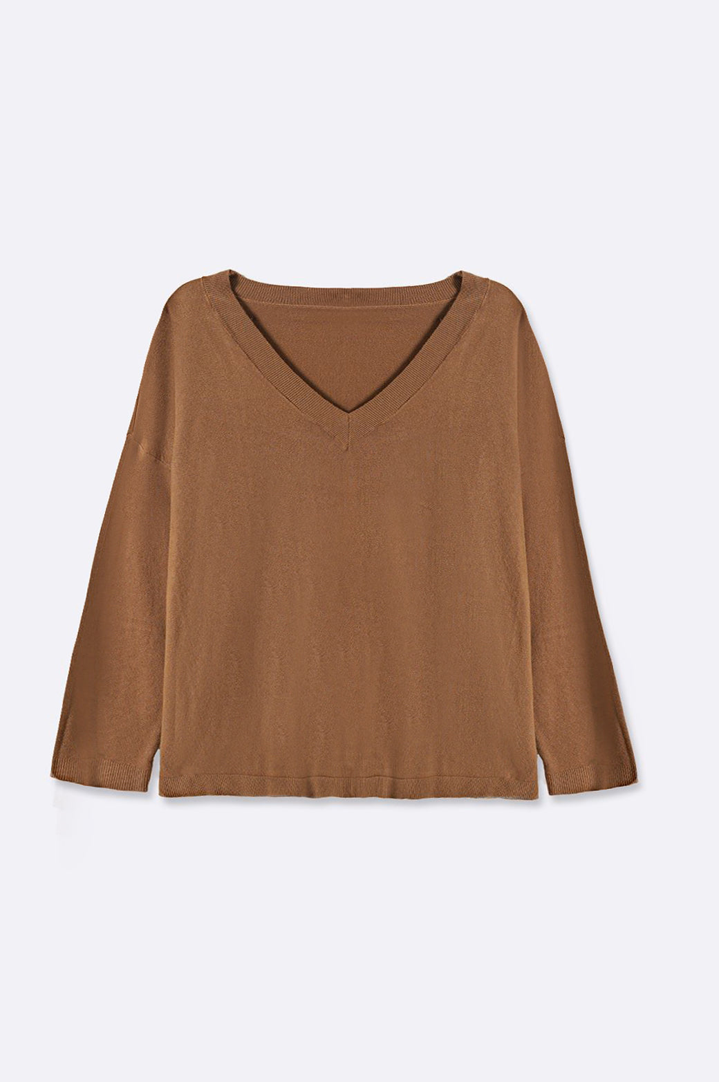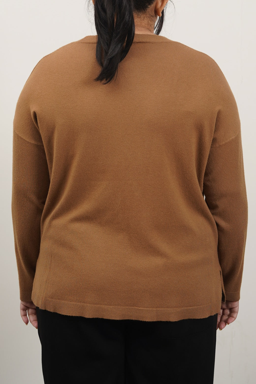 CAMEL CURVE HOMEBODY V-NECK SWEATER