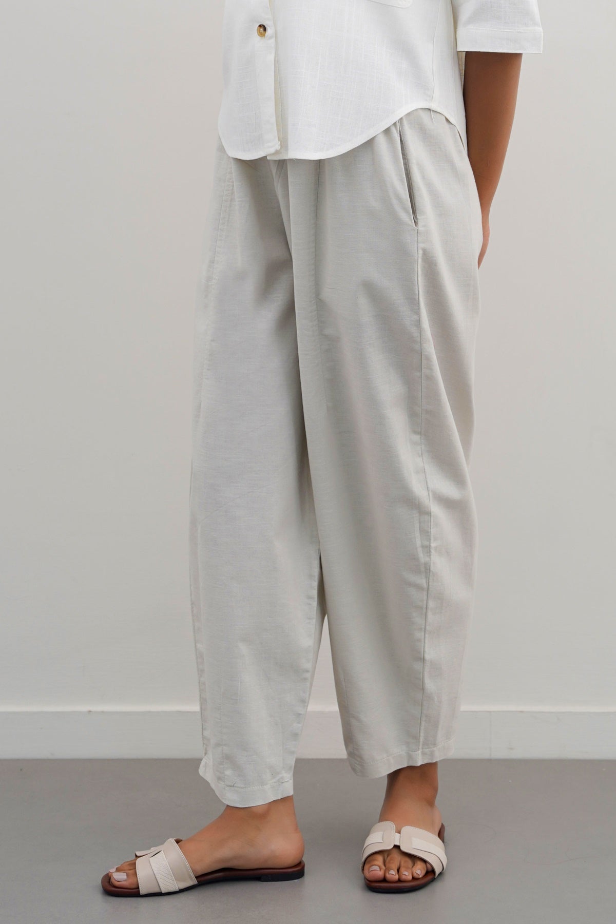 BEIGE EASY BARREL PANTS