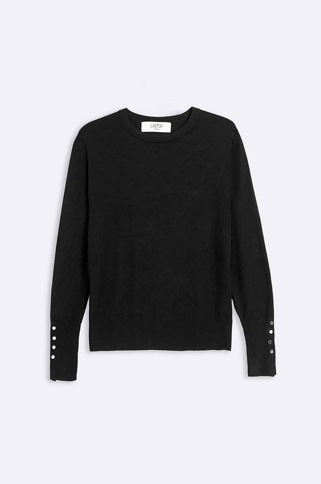 Design detail: An all-time favorite, this classic crew-neck jumper has full sleeves with gold buttons on the long fitted cuffs.