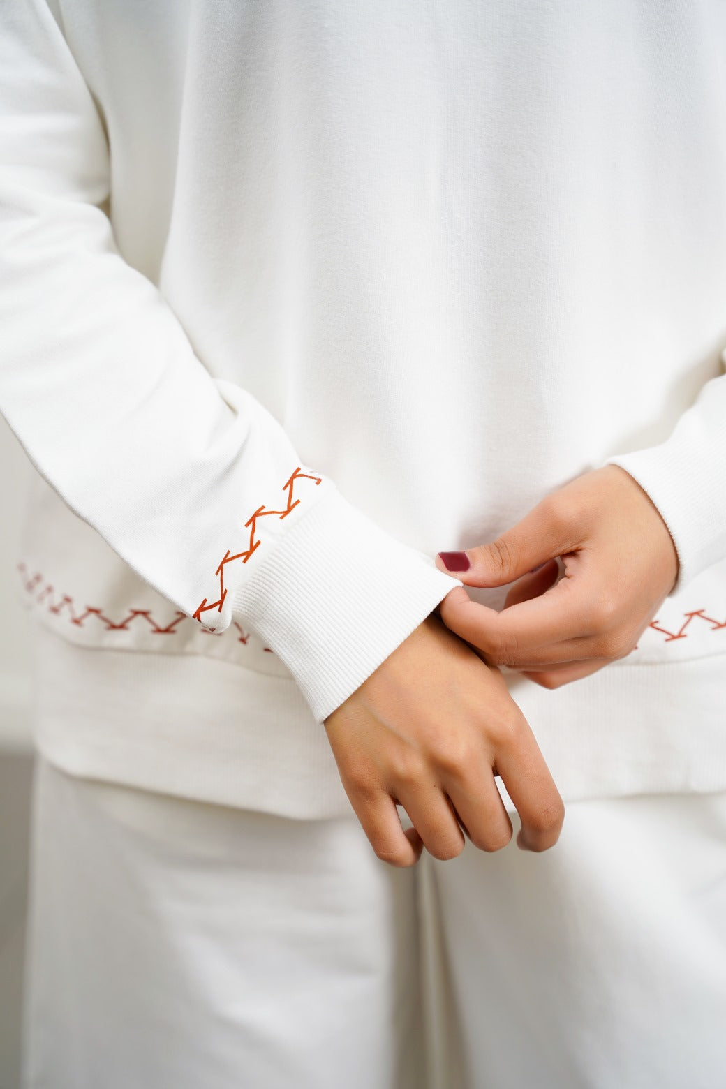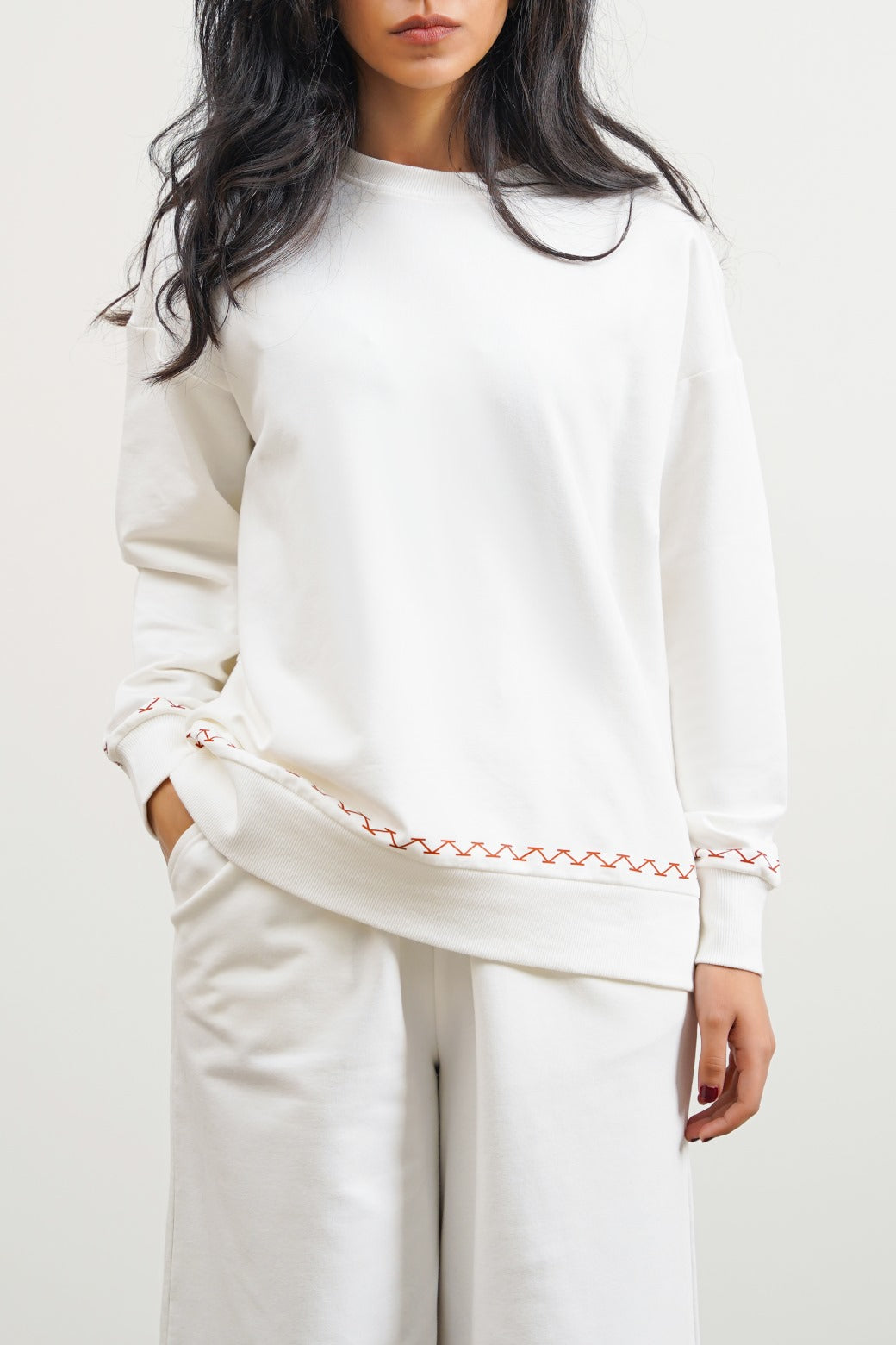Design detail: Sweatshirt made of cotton mix yarn along with round neck and long sleeves. Featuring printing on bottom and sleeve opening