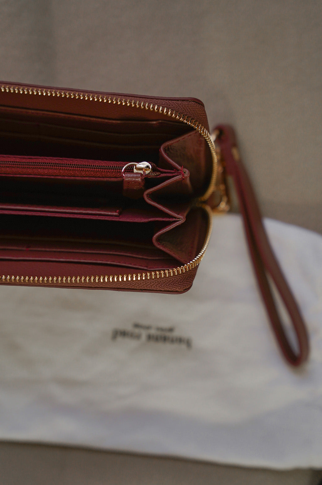 Design detail: Premium leather wallet with multiple sections, card slots and a zipped pocket to hold your belongings. It comes with a detachable strap. Zipper closure.
