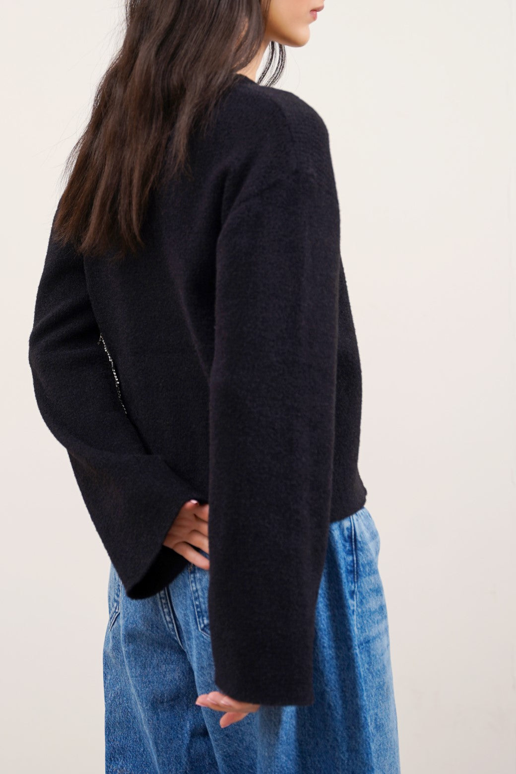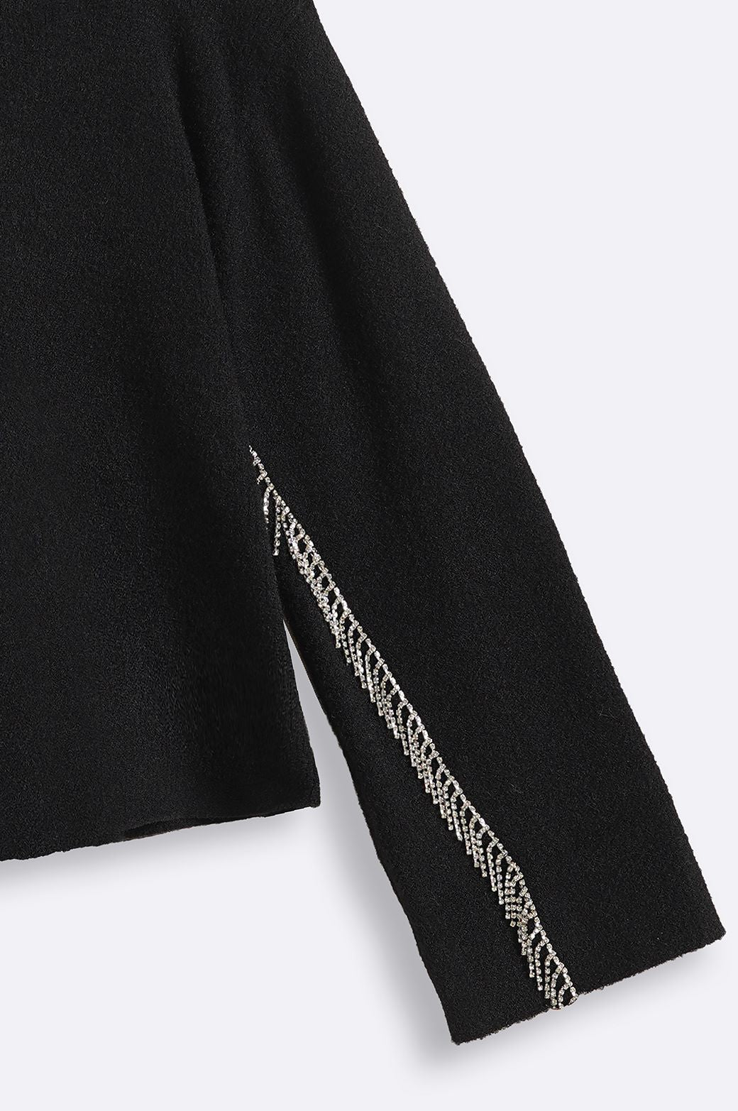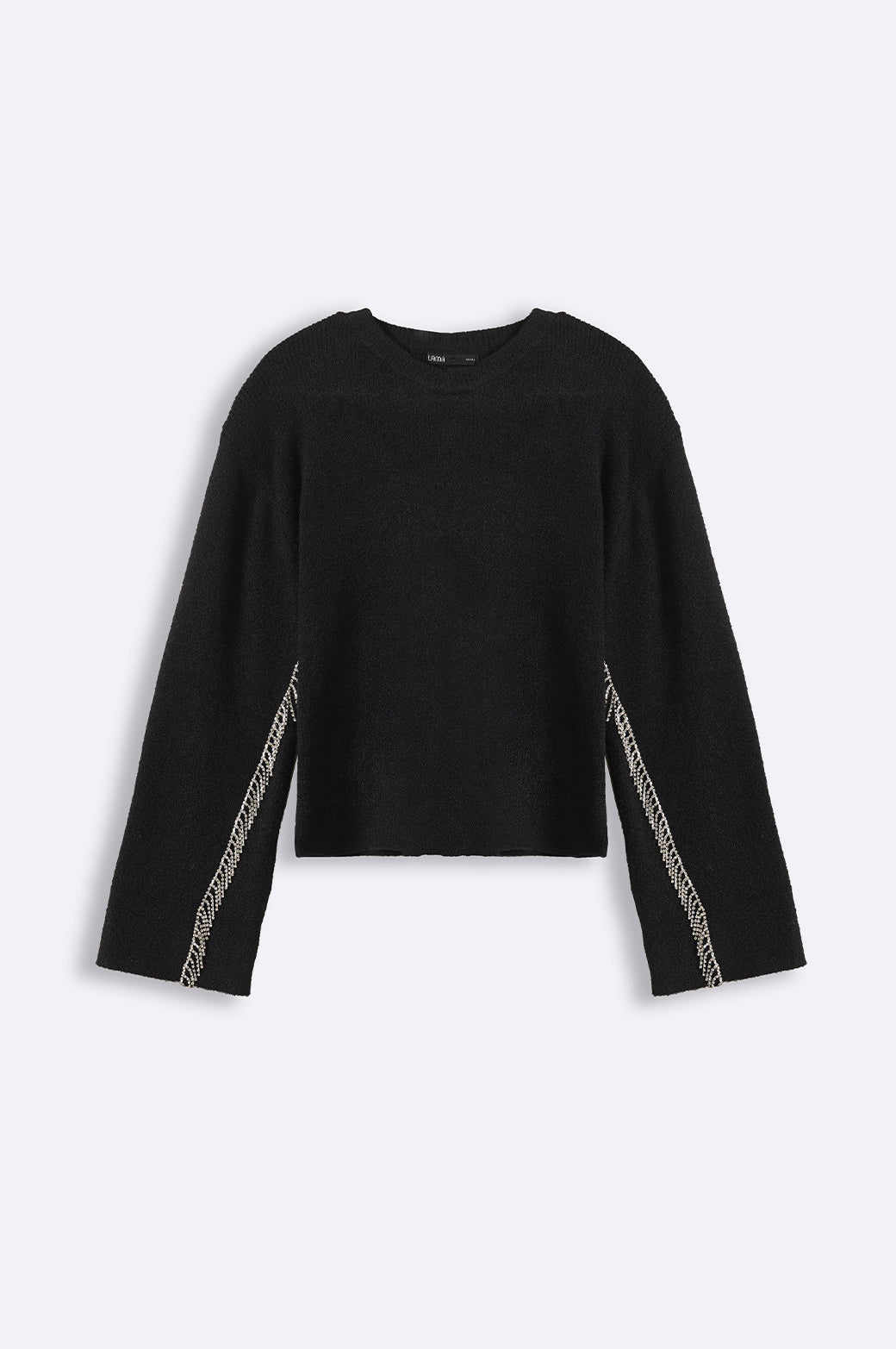Design detail: Regular-fit jumper in a soft knit. Round neckline, long sleeves and ribbing at neckline. Full length sleeves adorned with rhinestones on sleeves along with seamless finish on cuff and hem.