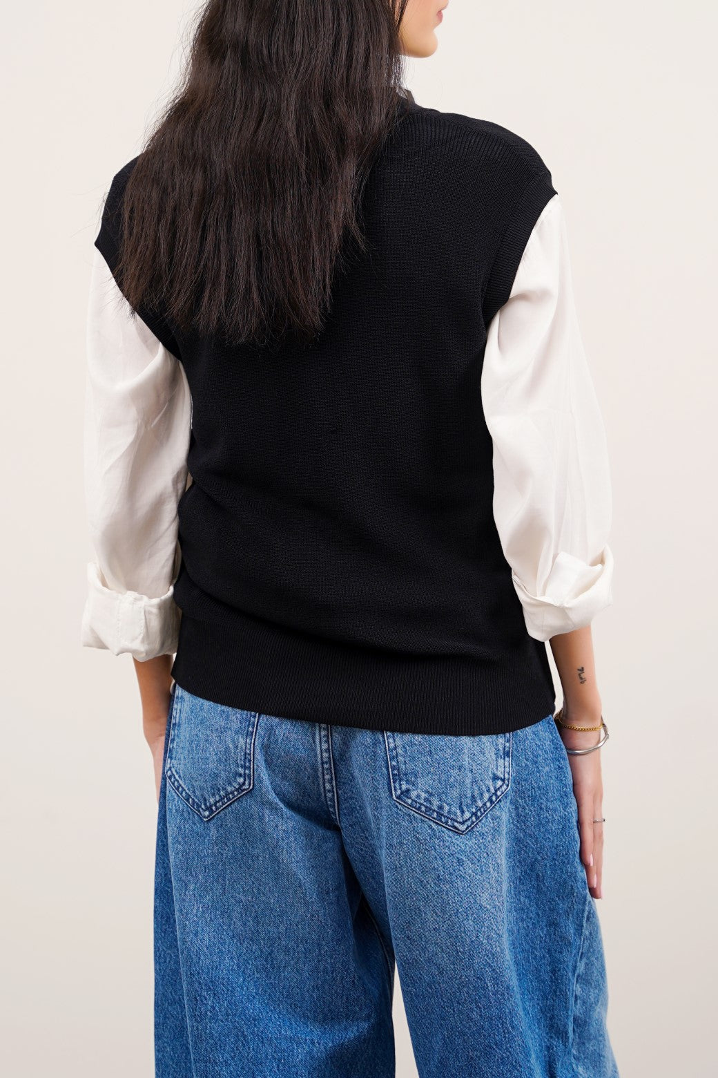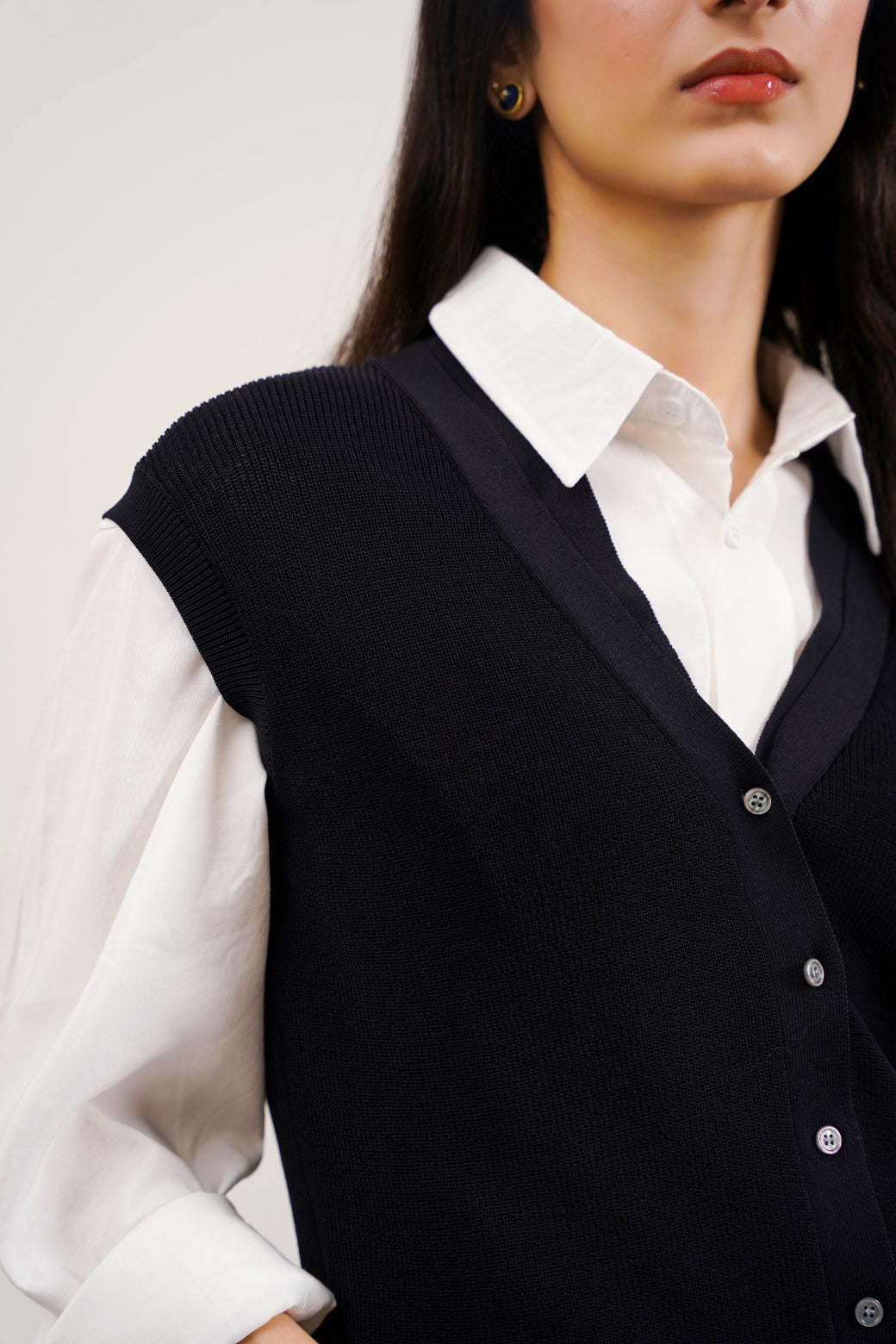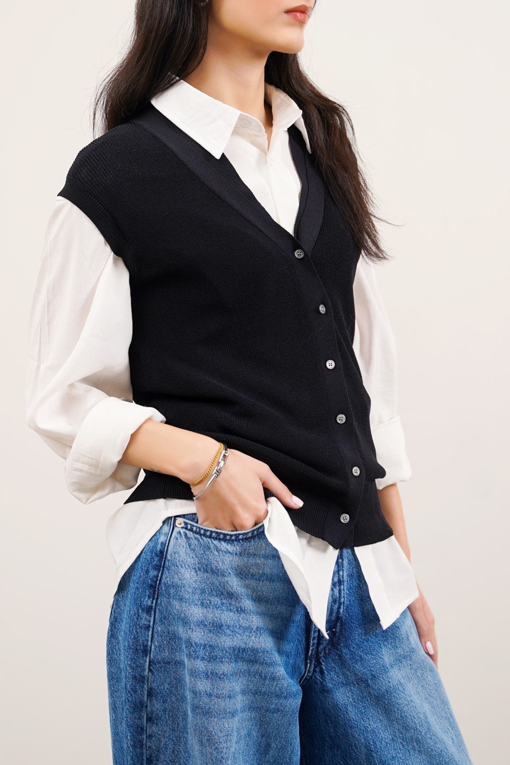 Design detail: This sleeveless rib-knit cardigan is finely knitted from different blends of yarn. It's cut in a regular silhouette and features a ribbed hem and armhole along with front button other of pearl fastening.