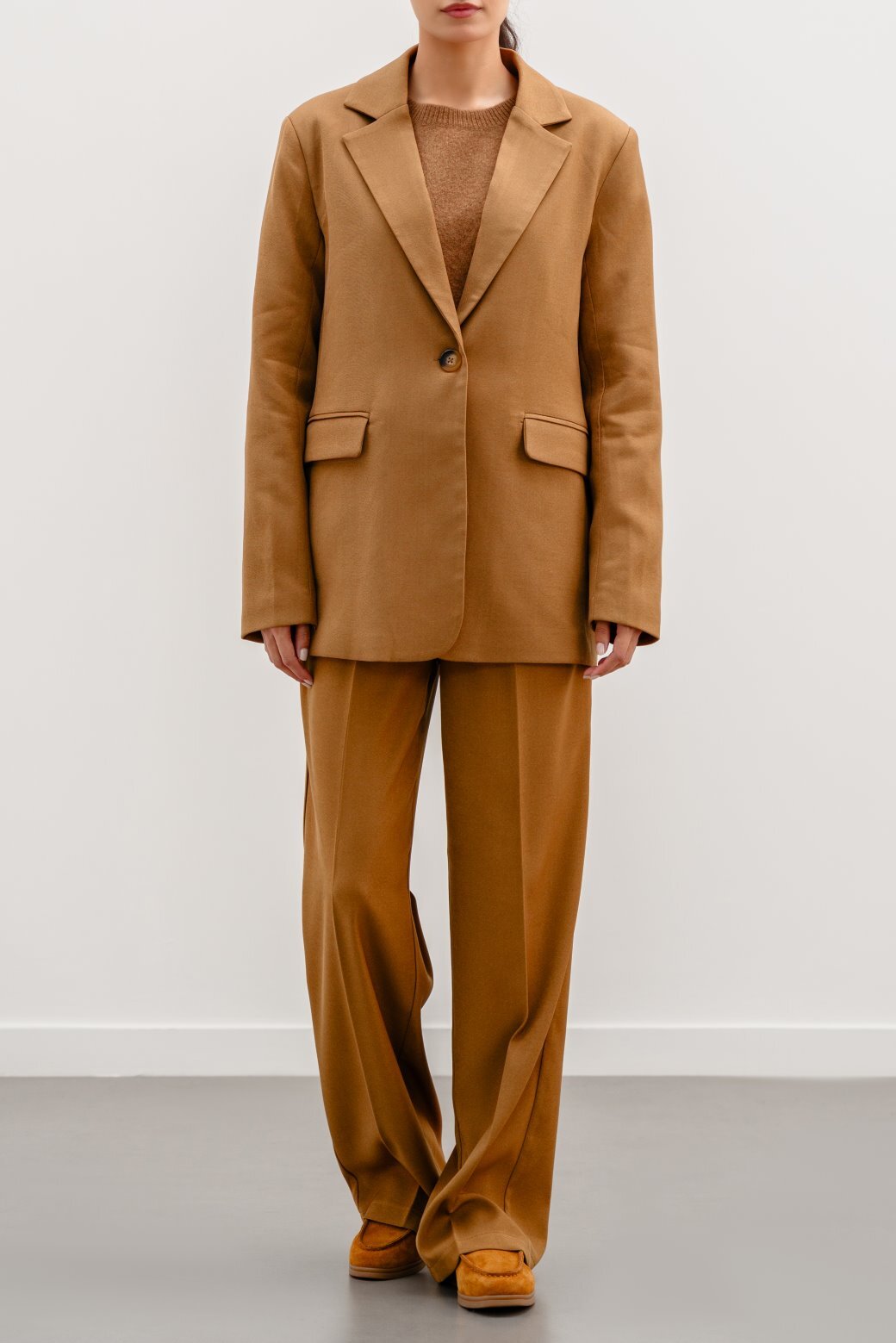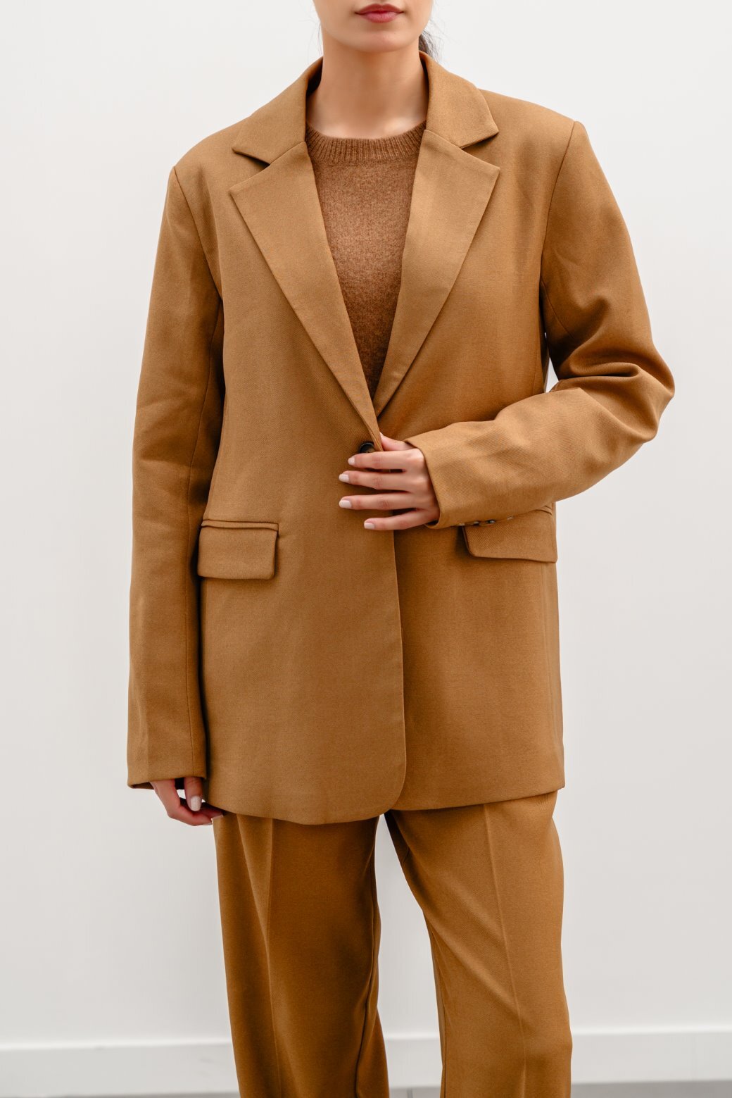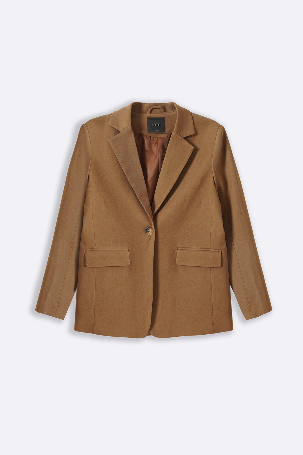 Design details: Full sleeves basic blazer with a notch collar and single button fastening. It has front flap pockets and a vent at back.