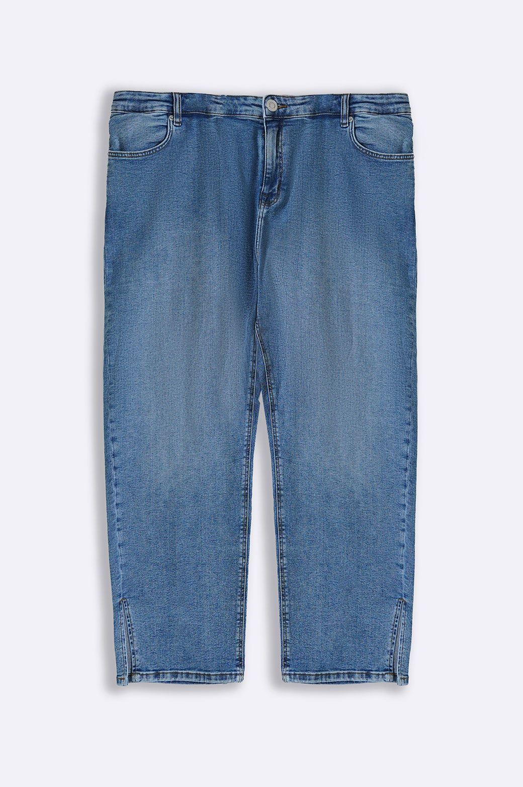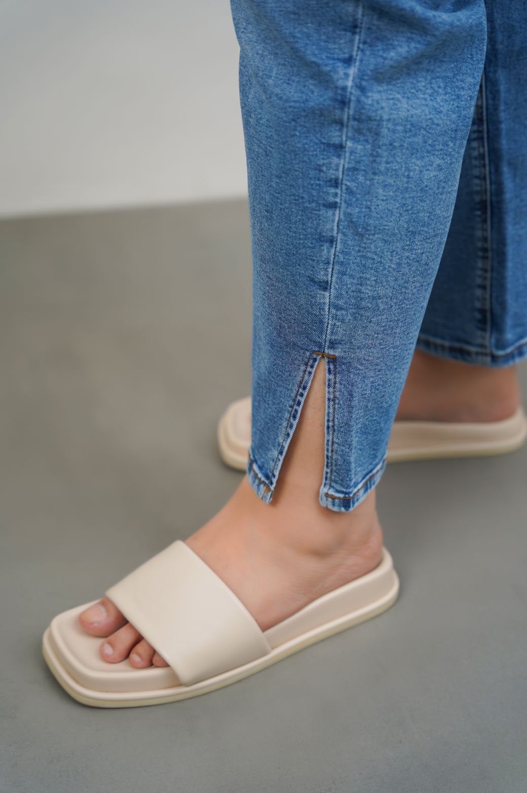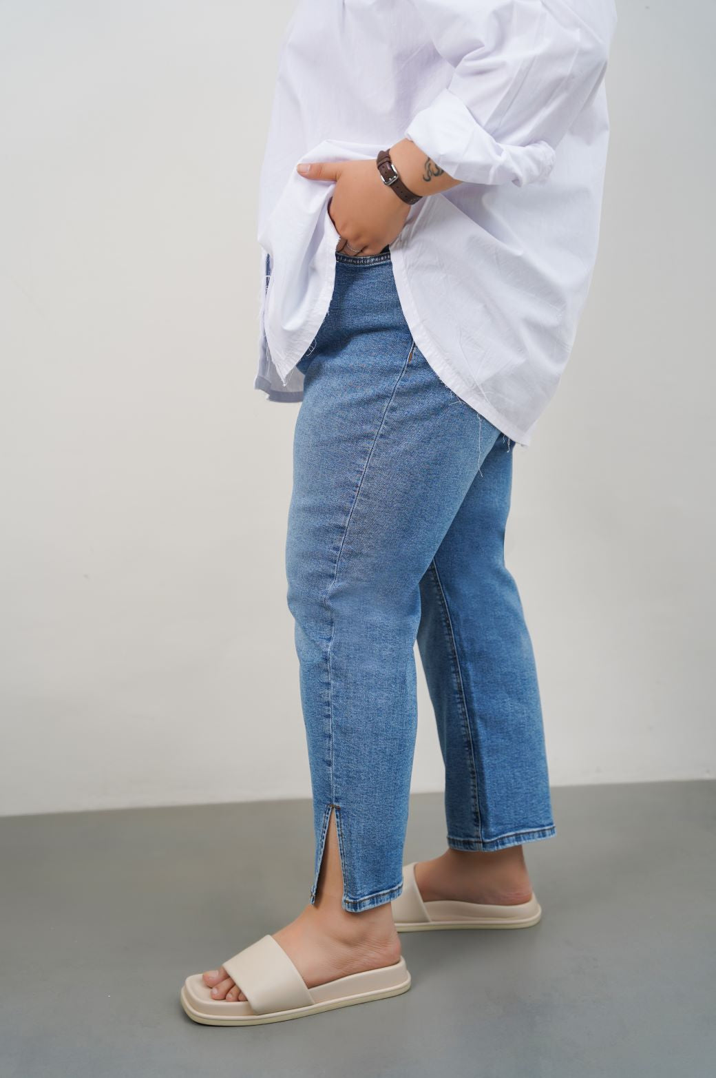 Design details: Midrise slim fit cropped jeans. Basic five pocket detail, scoop pocket details. Metal zipper and button closure. Side slit detail at bottom opening.