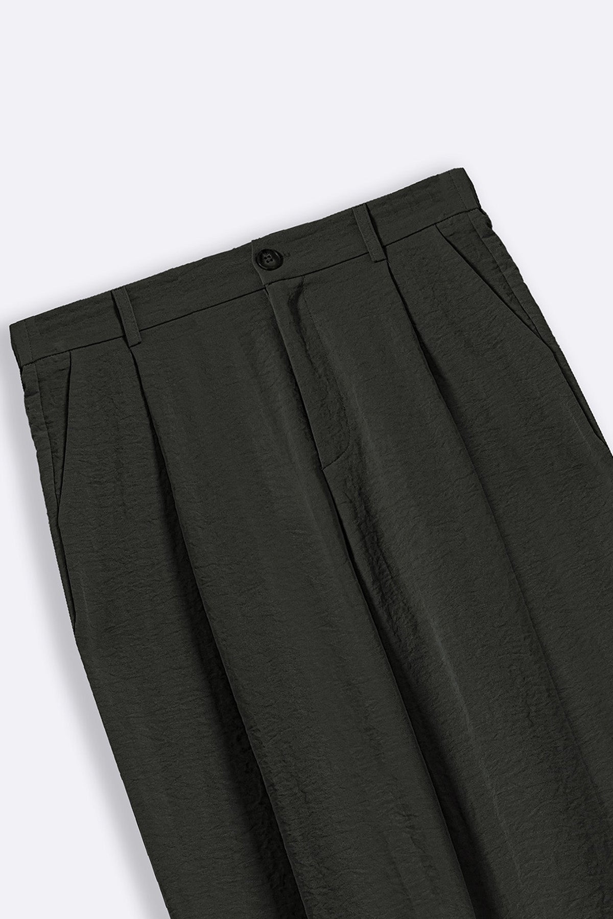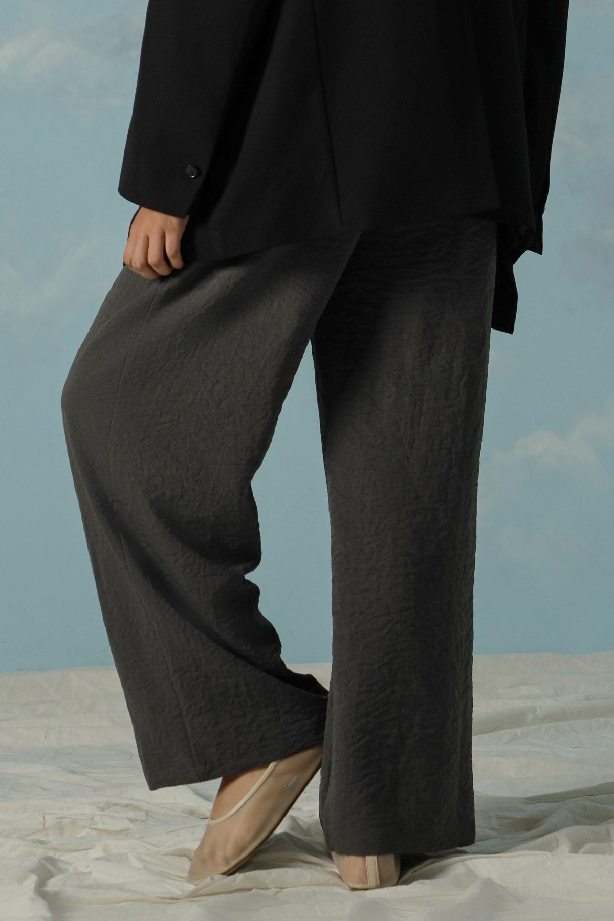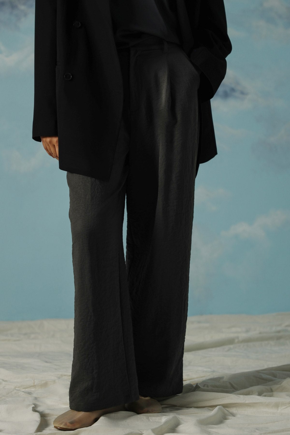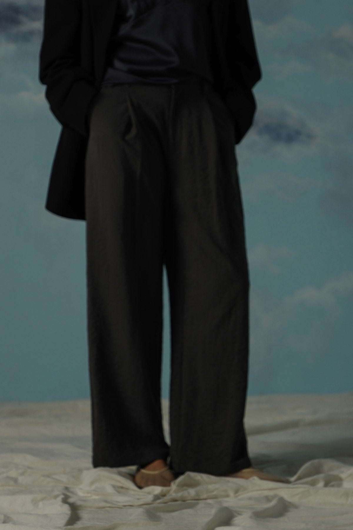 Design details: Pleated wide leg pants with side pockets, front button closure and an elasticated back.