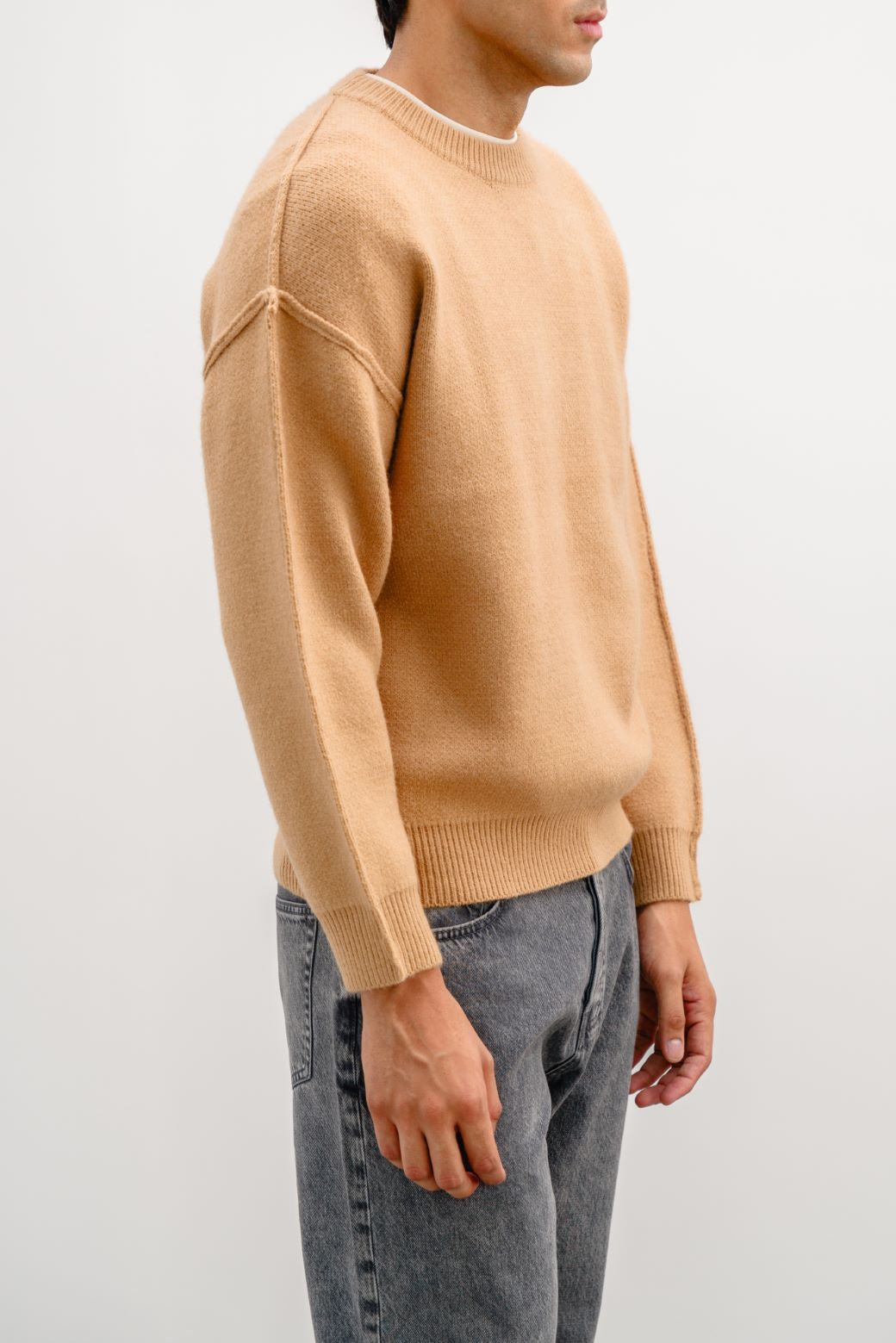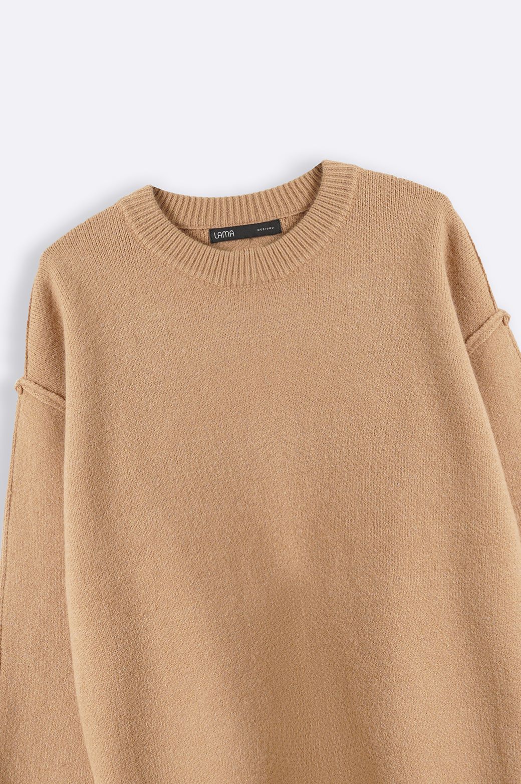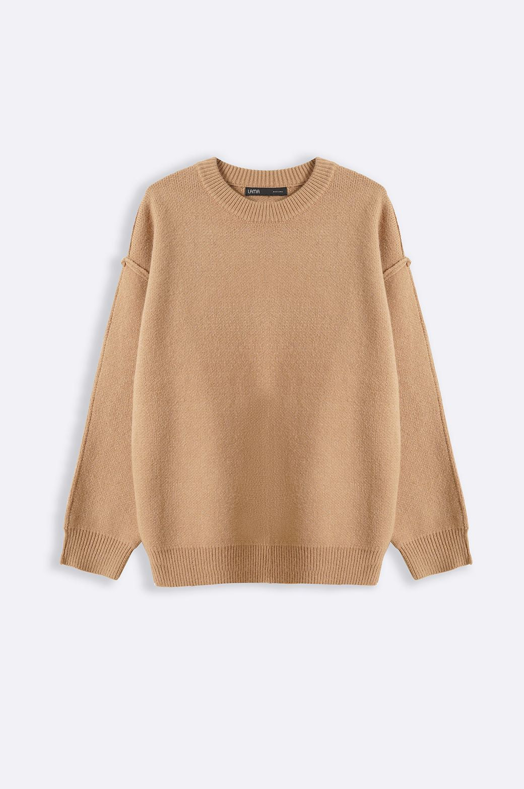 Design details: Drop shoulder sweater with crew neck and long sleeves featuring rib trims.