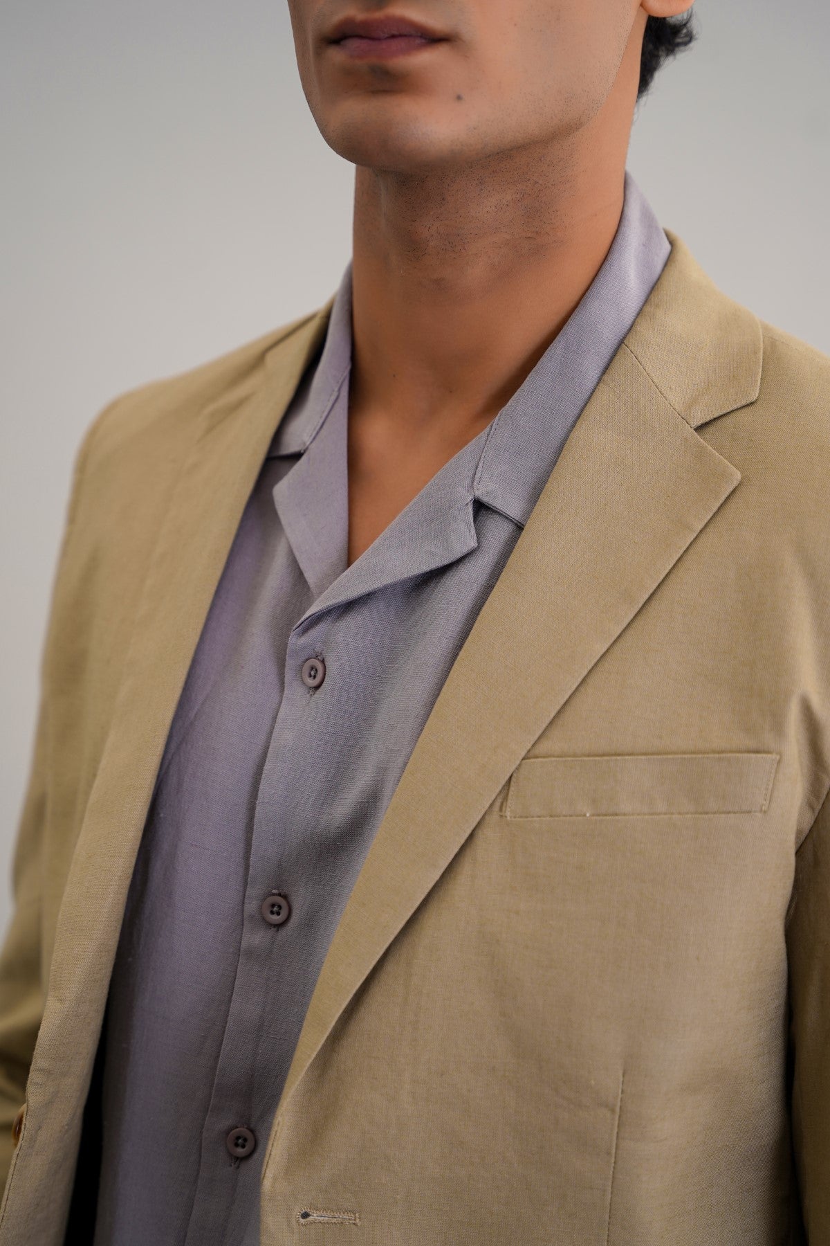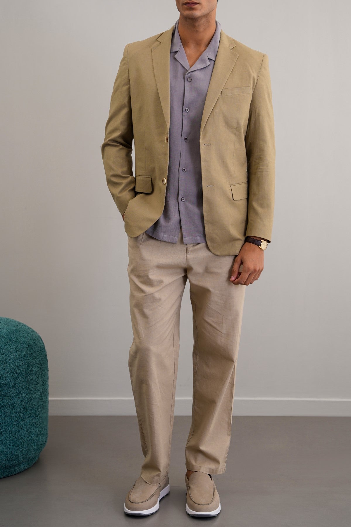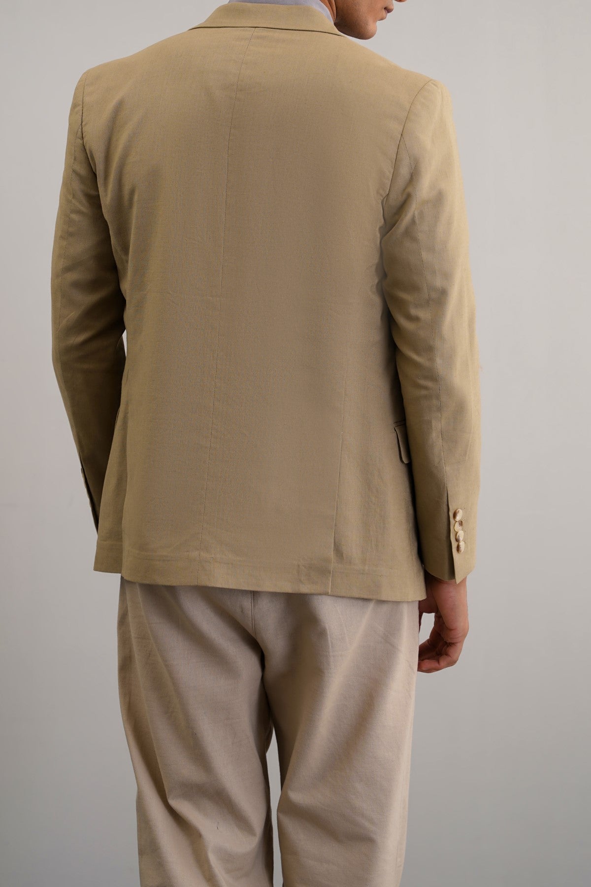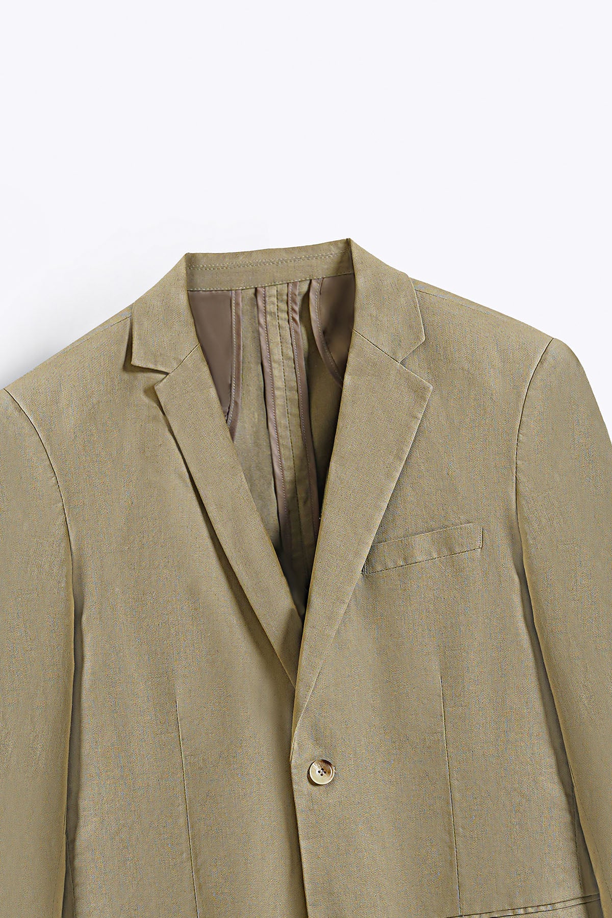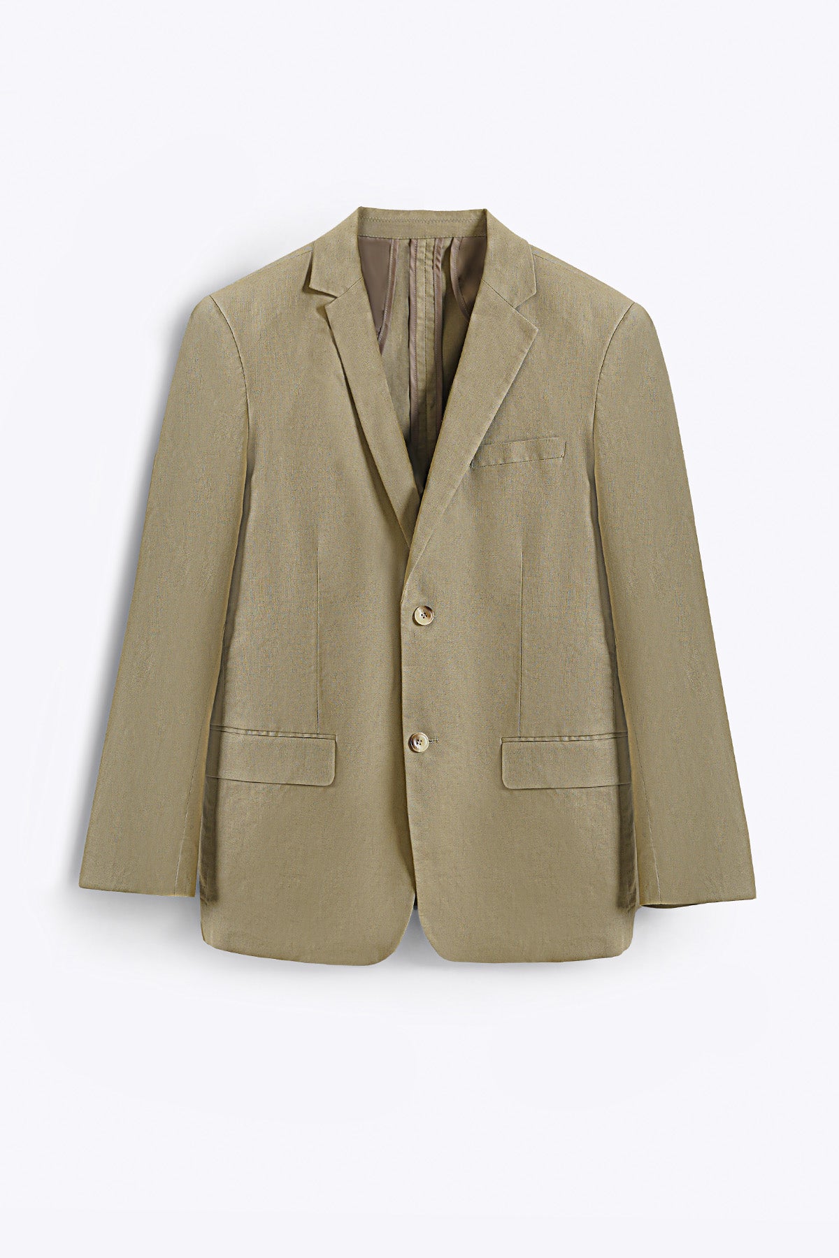 Design details: Light-weight, linen blazer without lining. Front button closure with side flap pockets and double rear vents.