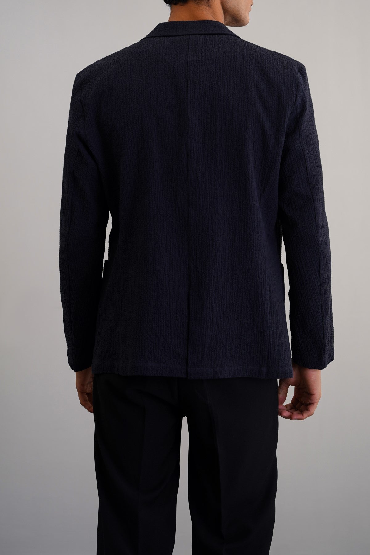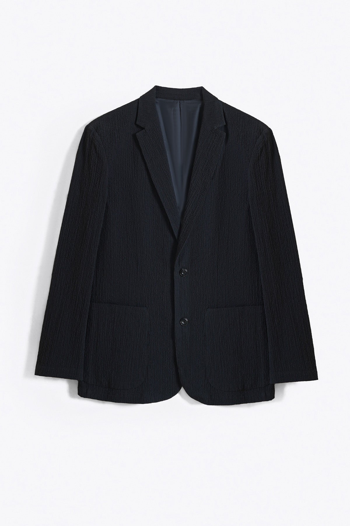 Design details: Light-weight, non-structured, single-breasted blazer with half lining and side patch pockets. Front button closure and a single rear vent.