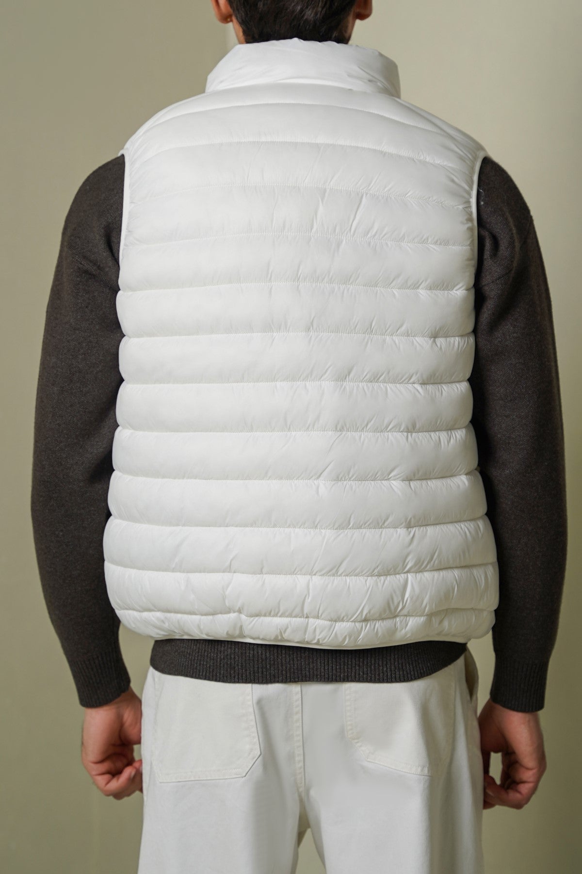 Design details: Sleeveless Puffer jacket with detachable hood. Cross pockets, front zipper with interior pocket.