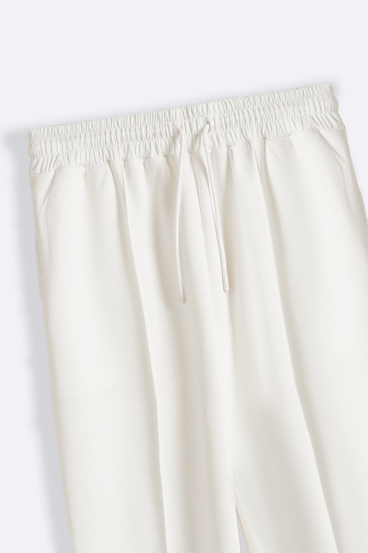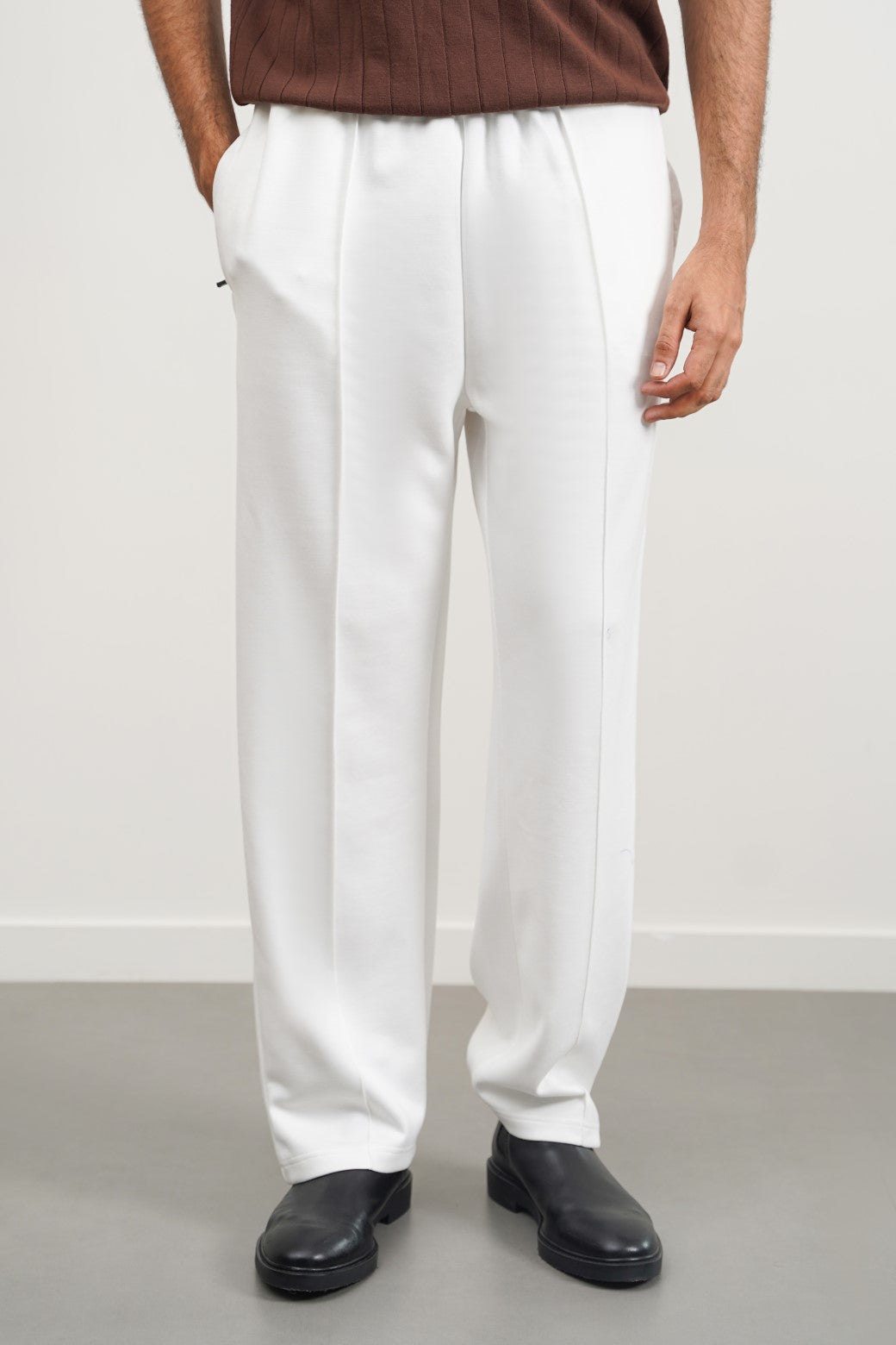 Design details: Relaxed fit trousers with an adjustable elasticated drawstring waistband. Front pockets and back patch pocket. Seam detail on the front of the legs.