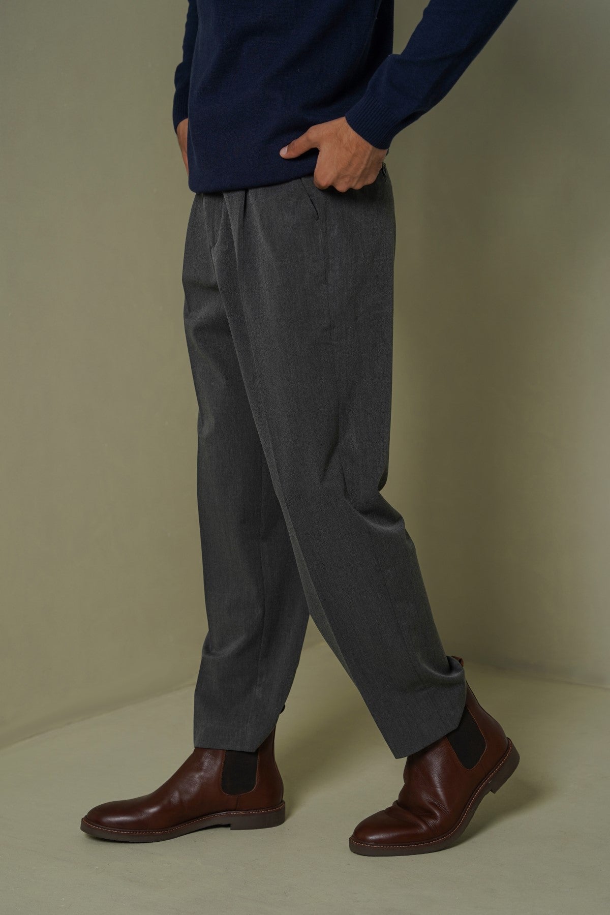 Design details: Pleated pants with an elasticated waistband and drawstring. Front cross pockets and back bone pockets.