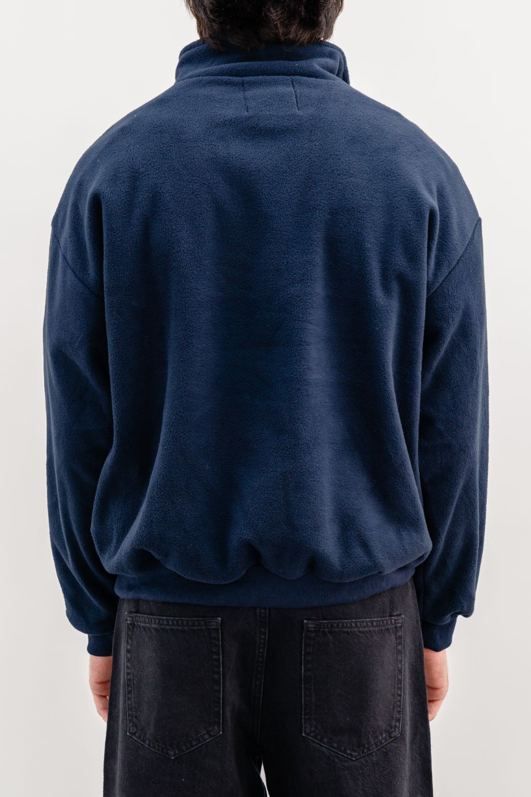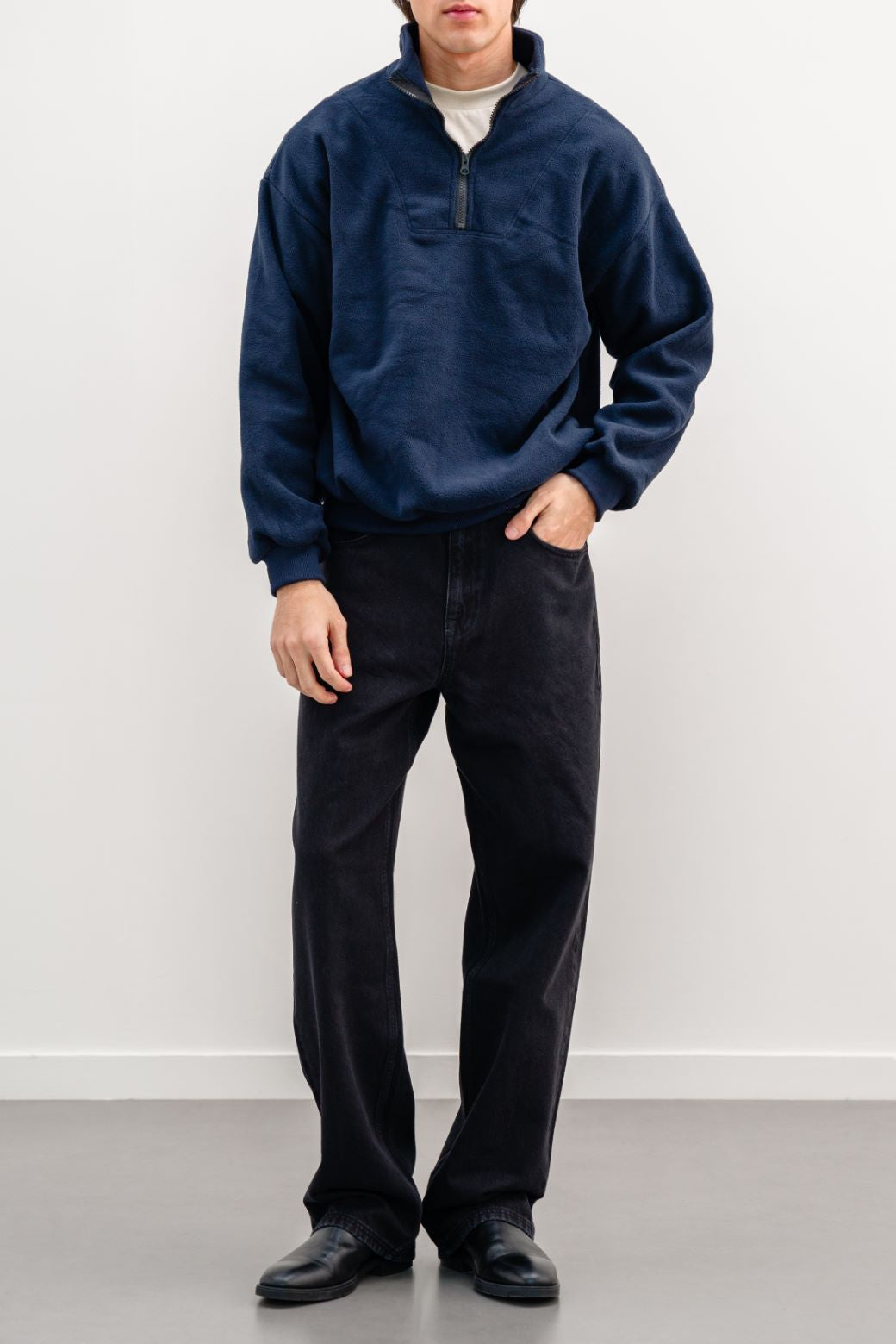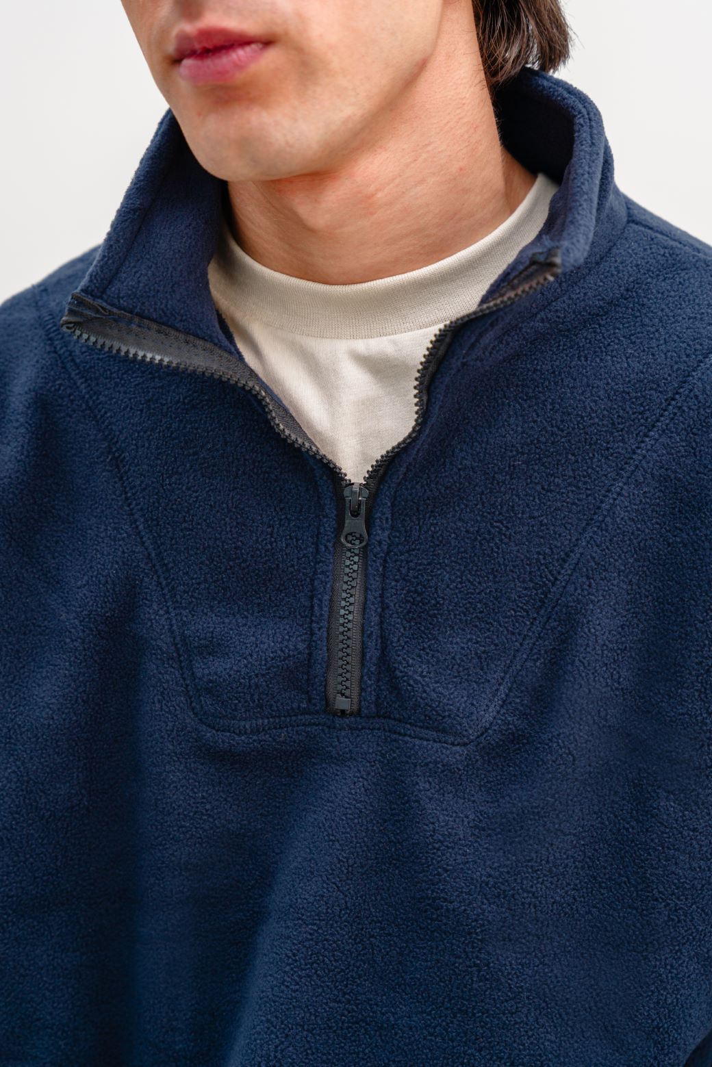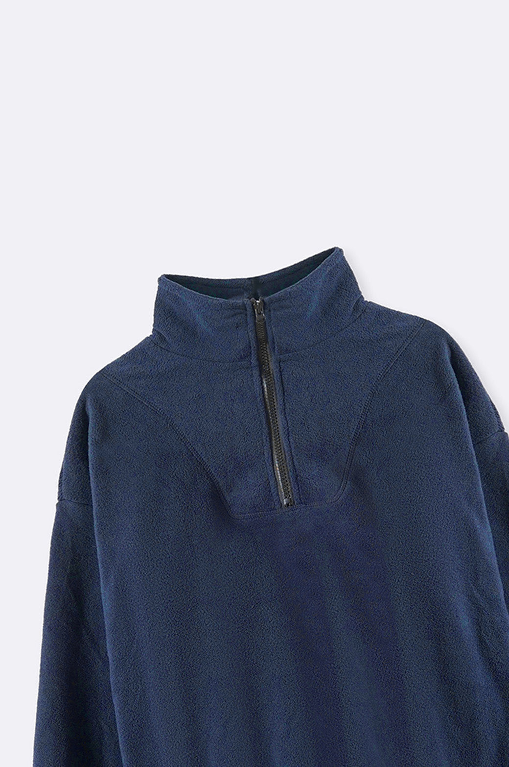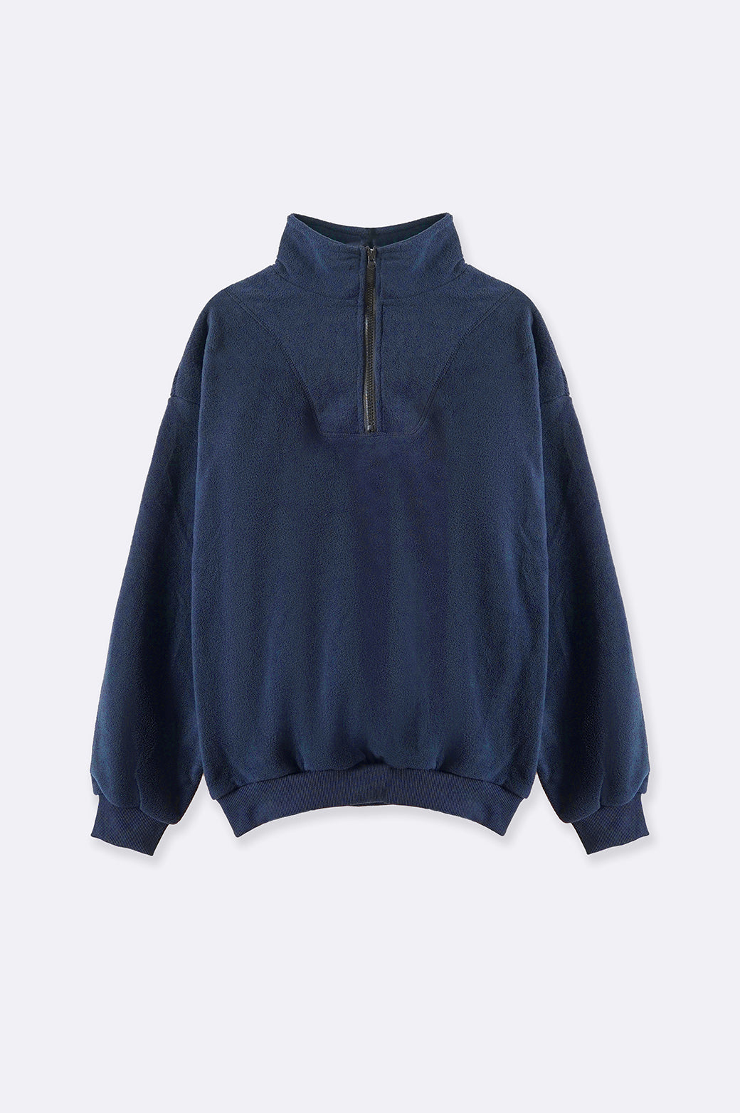 Design details: Plush pullover with high collar, short zipper and long sleeves with ribbed cuff and hem.