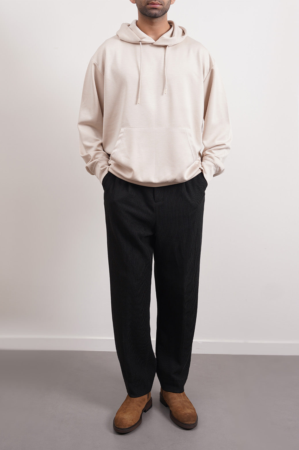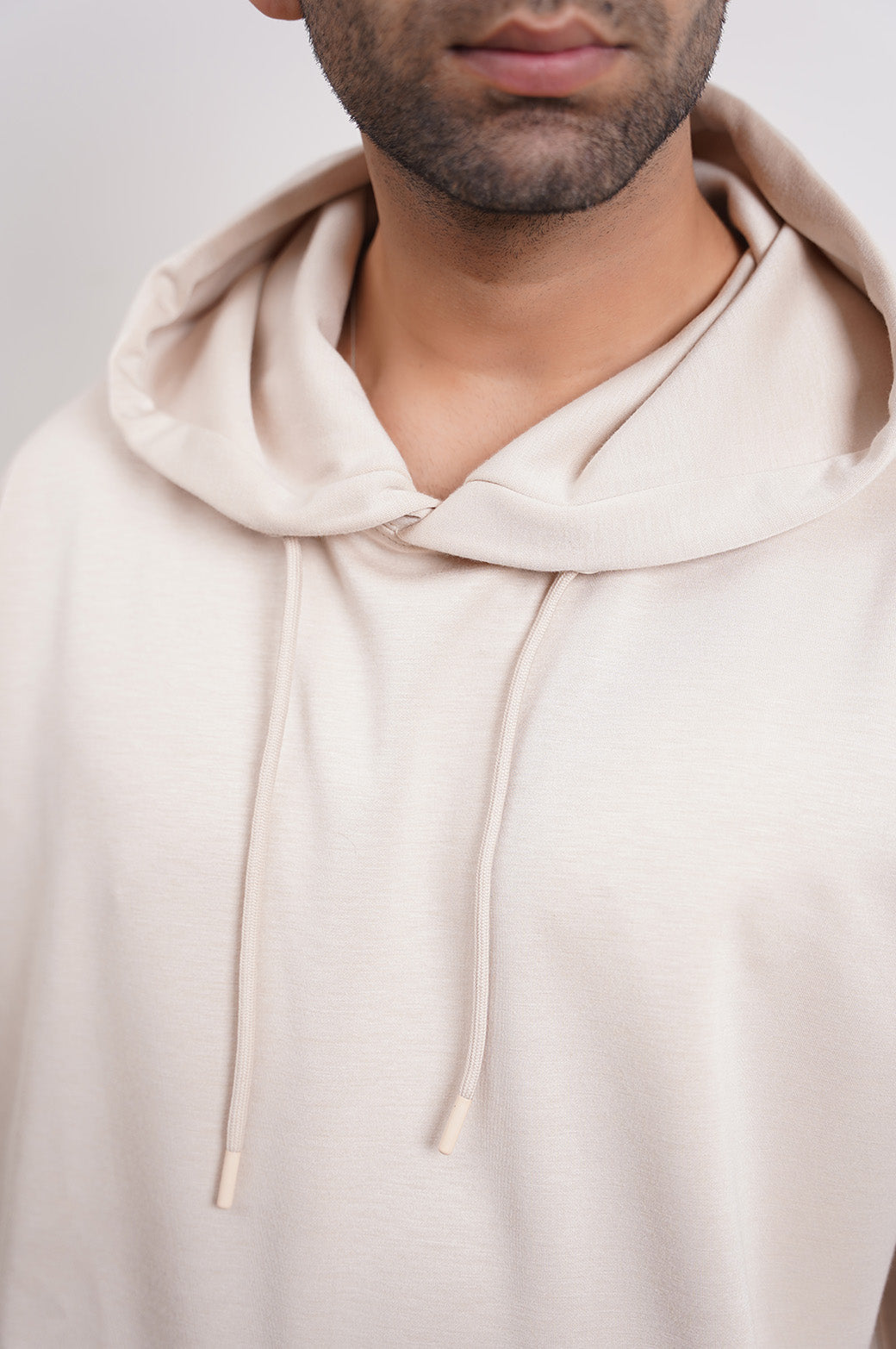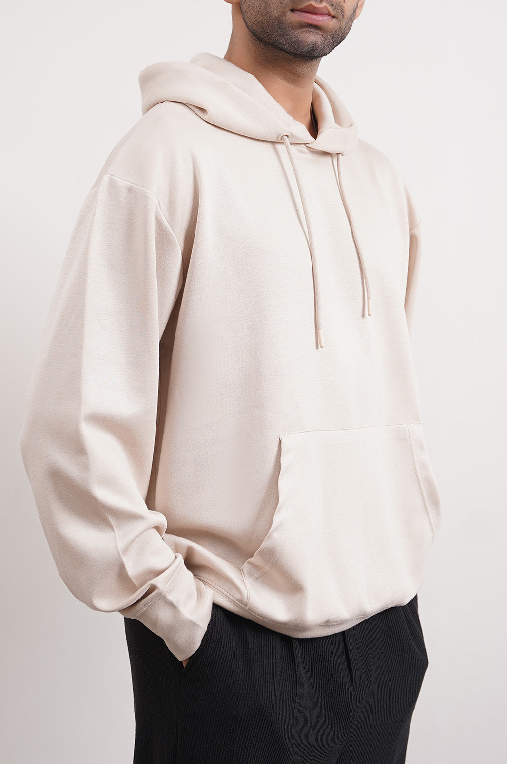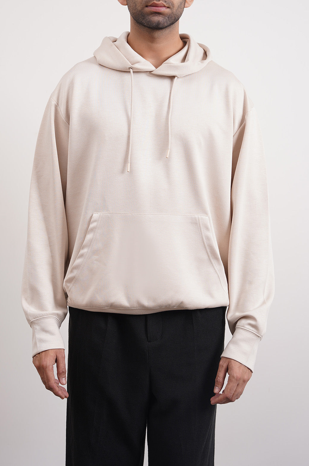 Design details: Hoodie made of neoprene fabric. Adjustable hood and long sleeves. Front pouch pocket and ribbed trims.