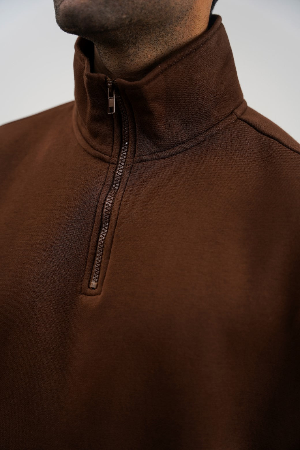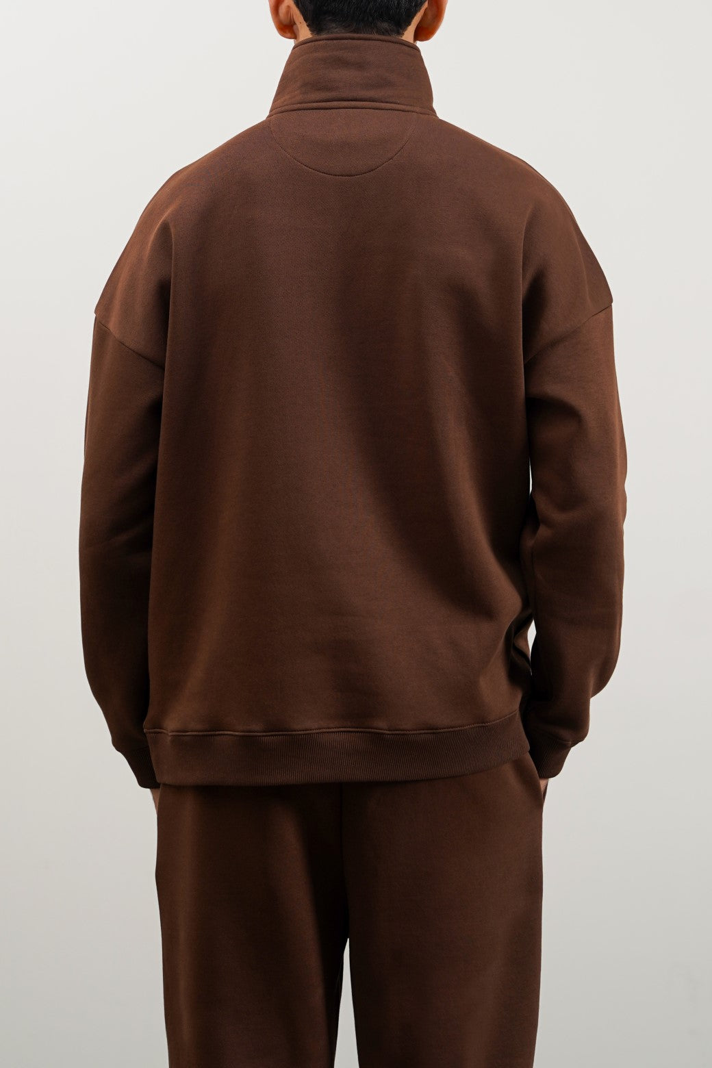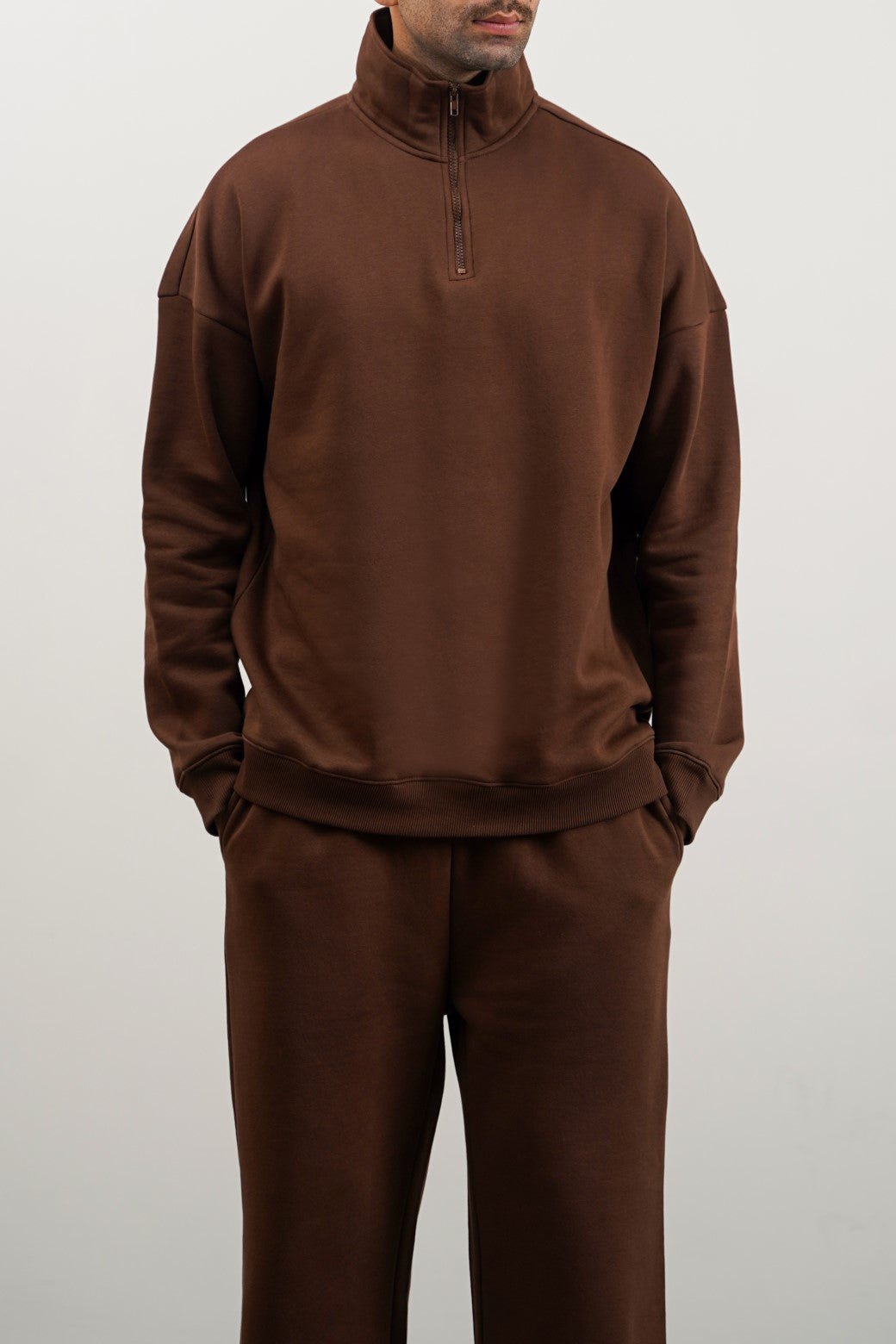 Design details: Cut in an oversized shape, this half-zip sweatshirt is made from cotton-blend fleece fabric and designed with a funnel neck and ribbed trims.