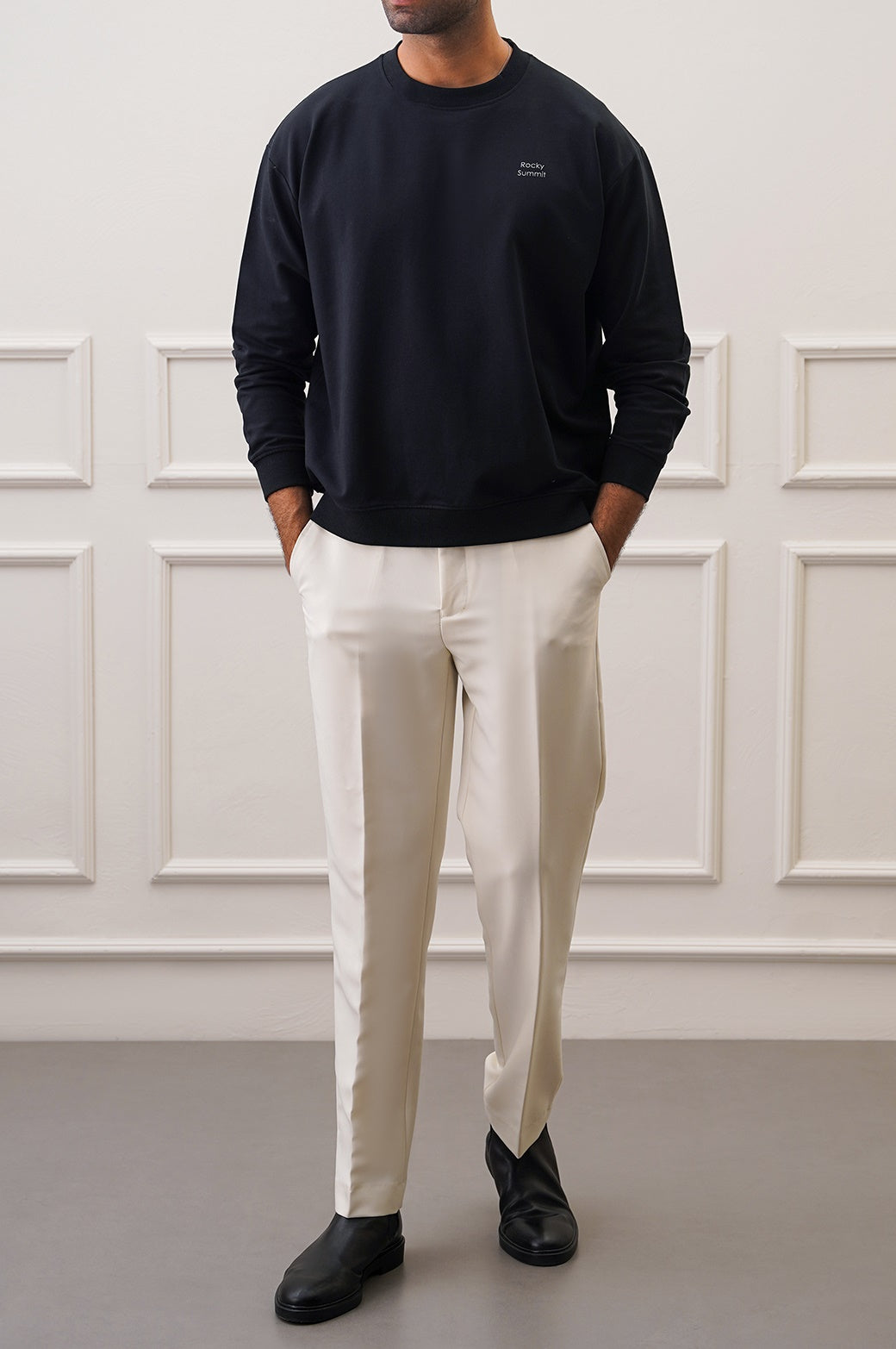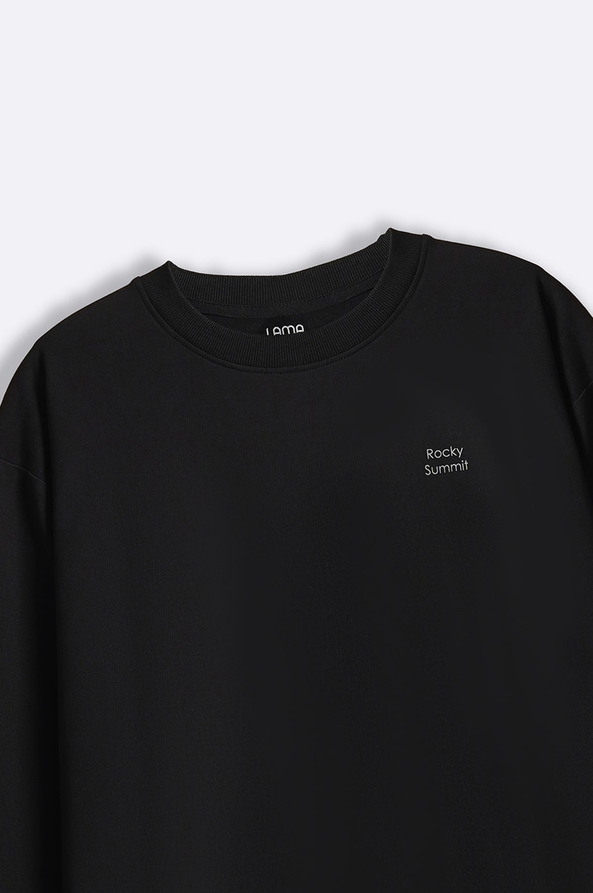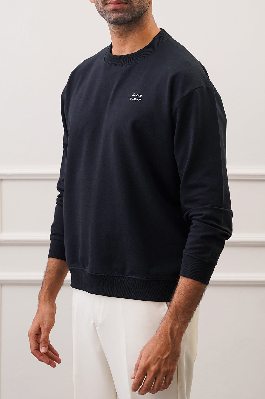 Design details: Printed sweatshirt featuring a round neck, long sleeves with ribbed trims. Printed text detail on the front