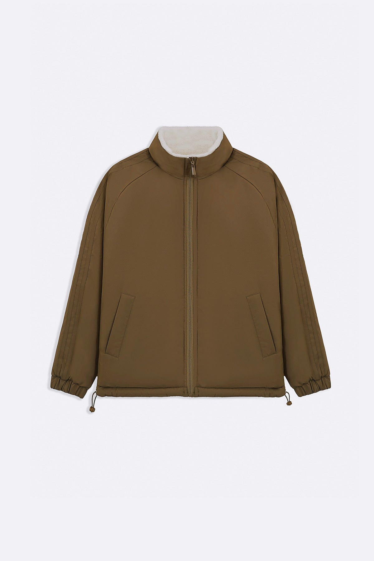 Design details: Reversible puffer jacket with woven outer shell and sherpa on the reverse side. Can be worn both ways with the easily adjustable zipper closure at the front. Both sides have side pockets and elasticated cuffs.