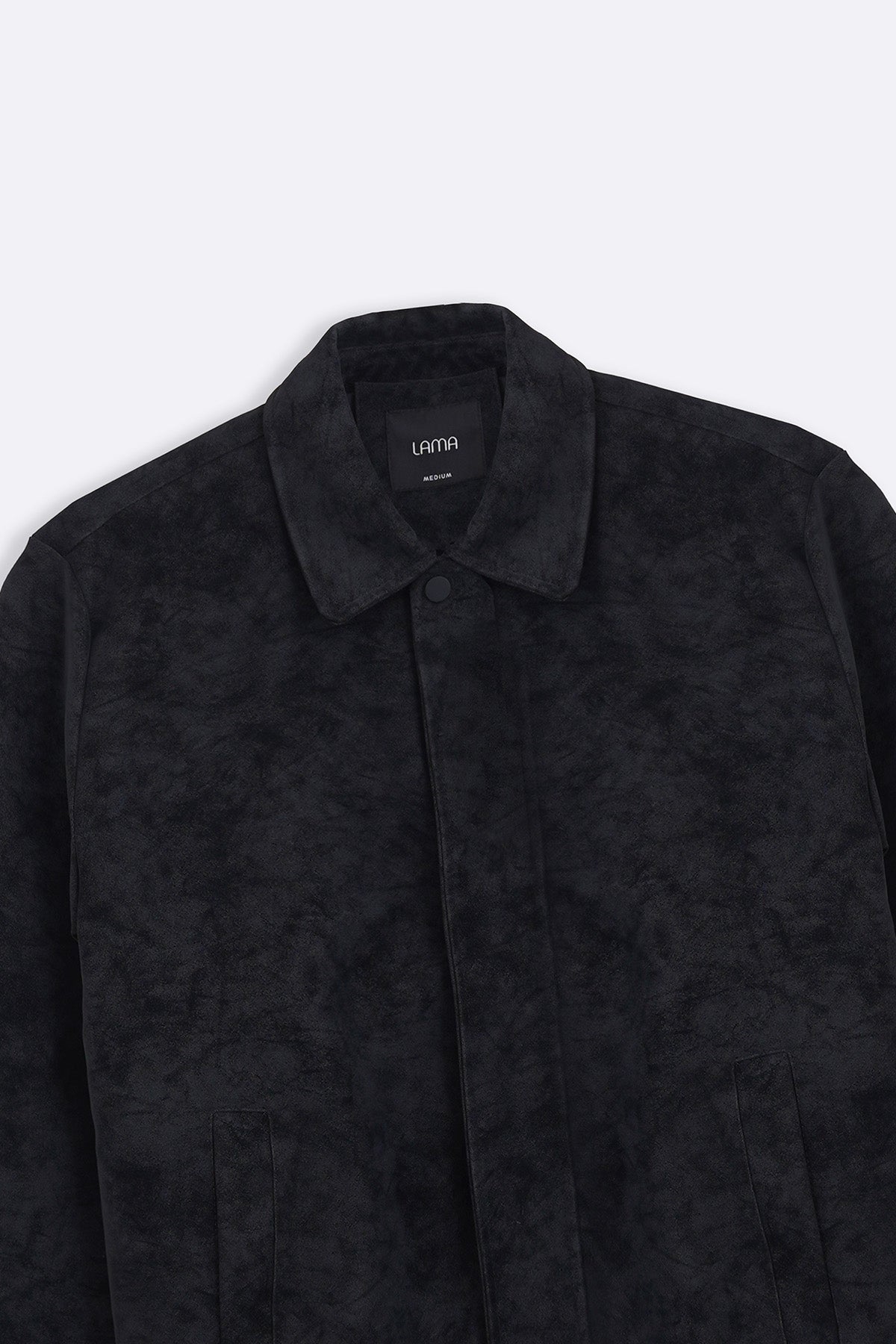 Design details: Bomber jacket with a brushed suede finish, elasticated hem and collar, bone pockets, front zipper and snap button closure.