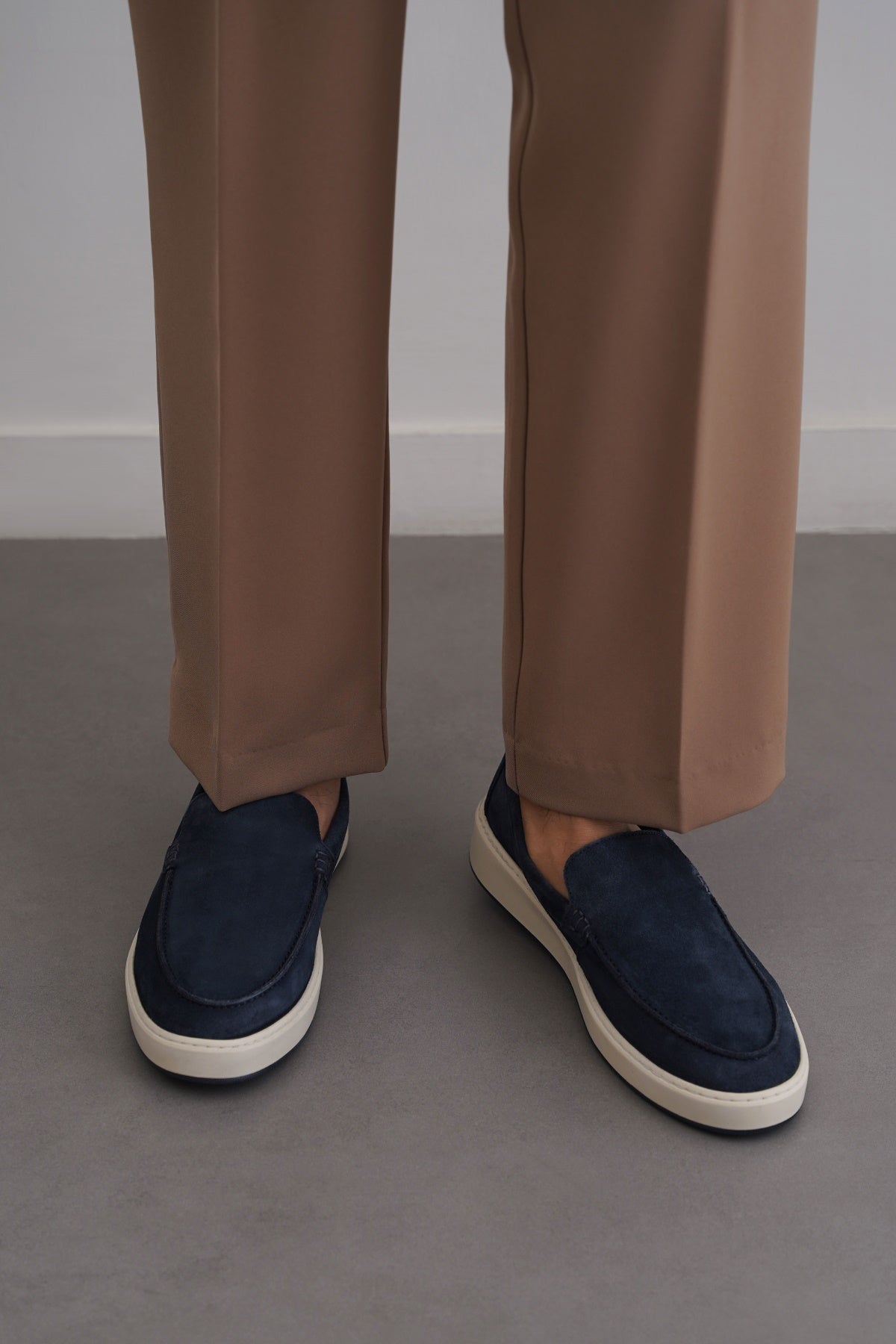 NAVY SUEDE LEATHER SLIP ON LOAFERS