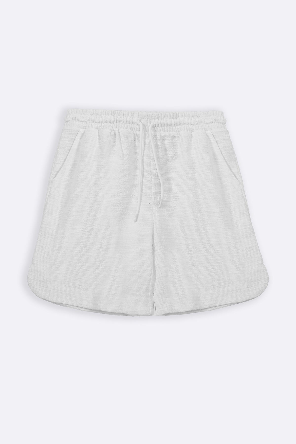 WHITE BOUCLE-KNIT SHORTS