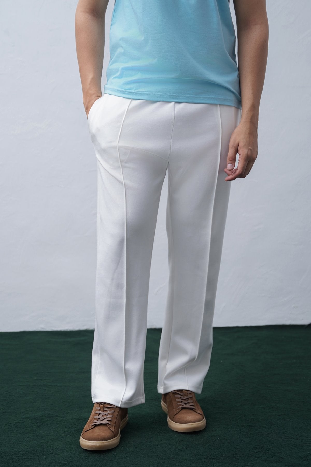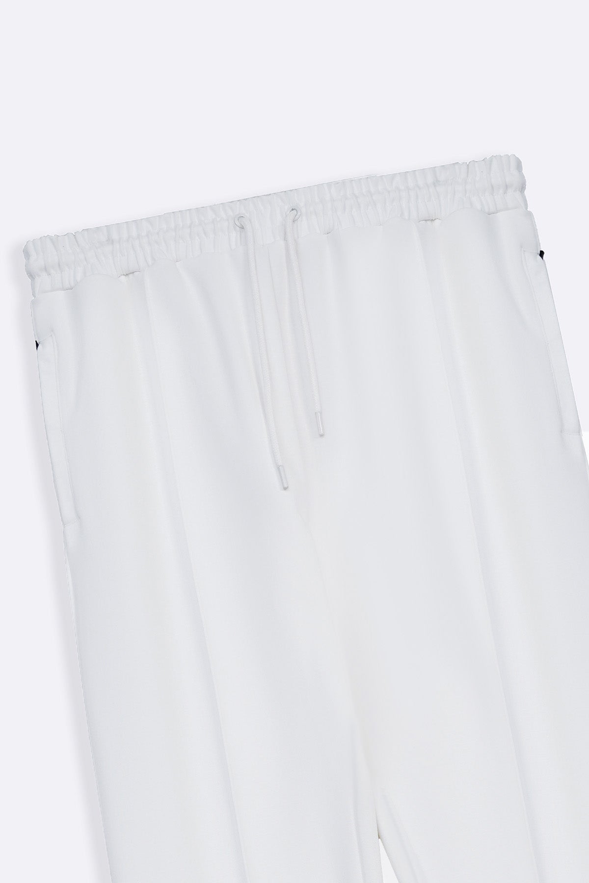 Design details: Pleated trousers with elasticated waistband and a drawcord.