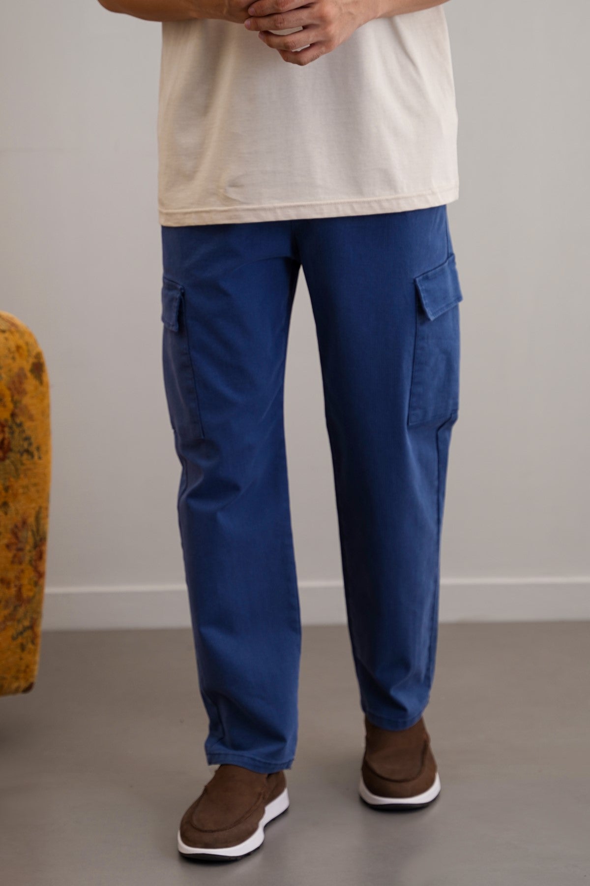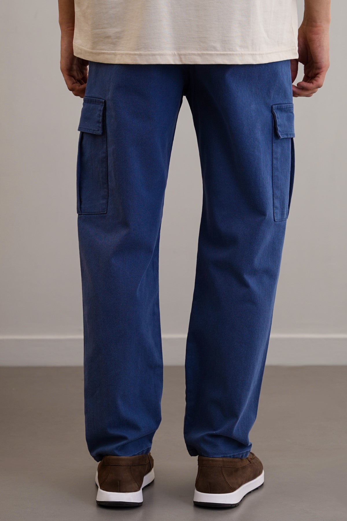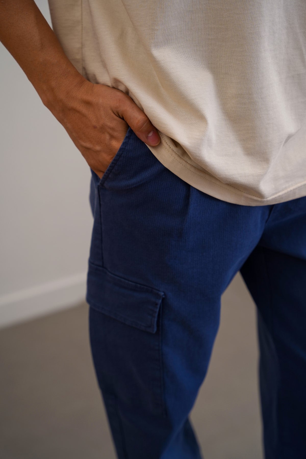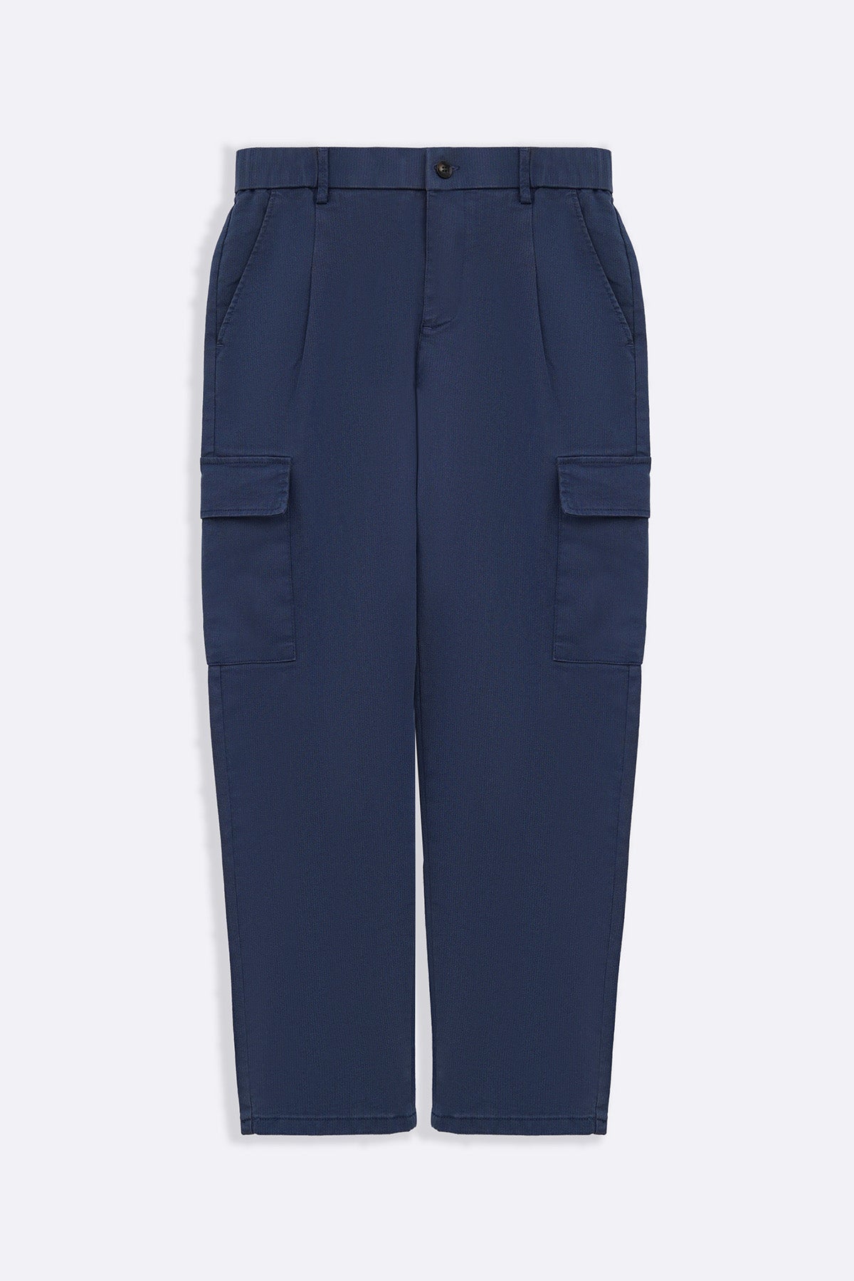 Design details: Textured, pleated cargos with an elasticated waist band. Front button and zip closure with a tapered fit.