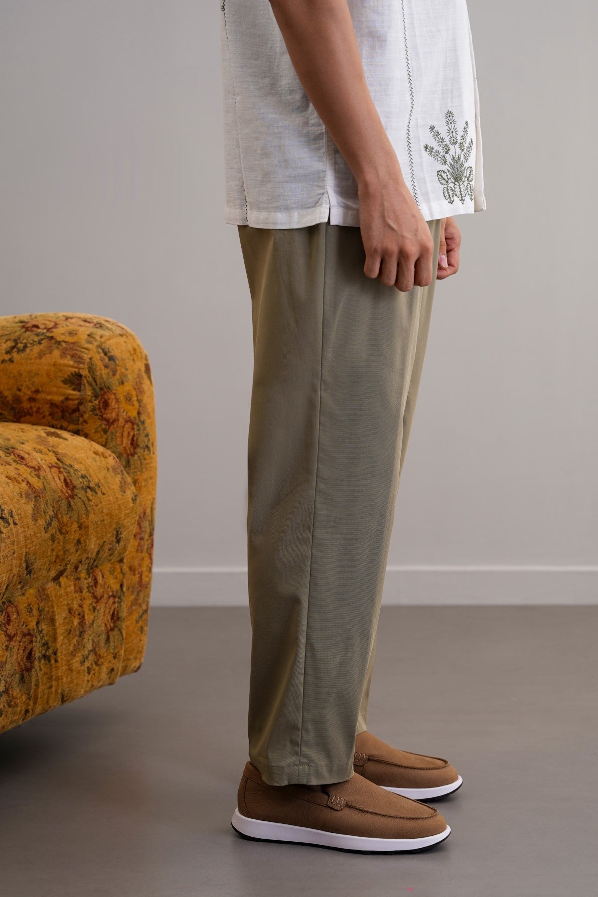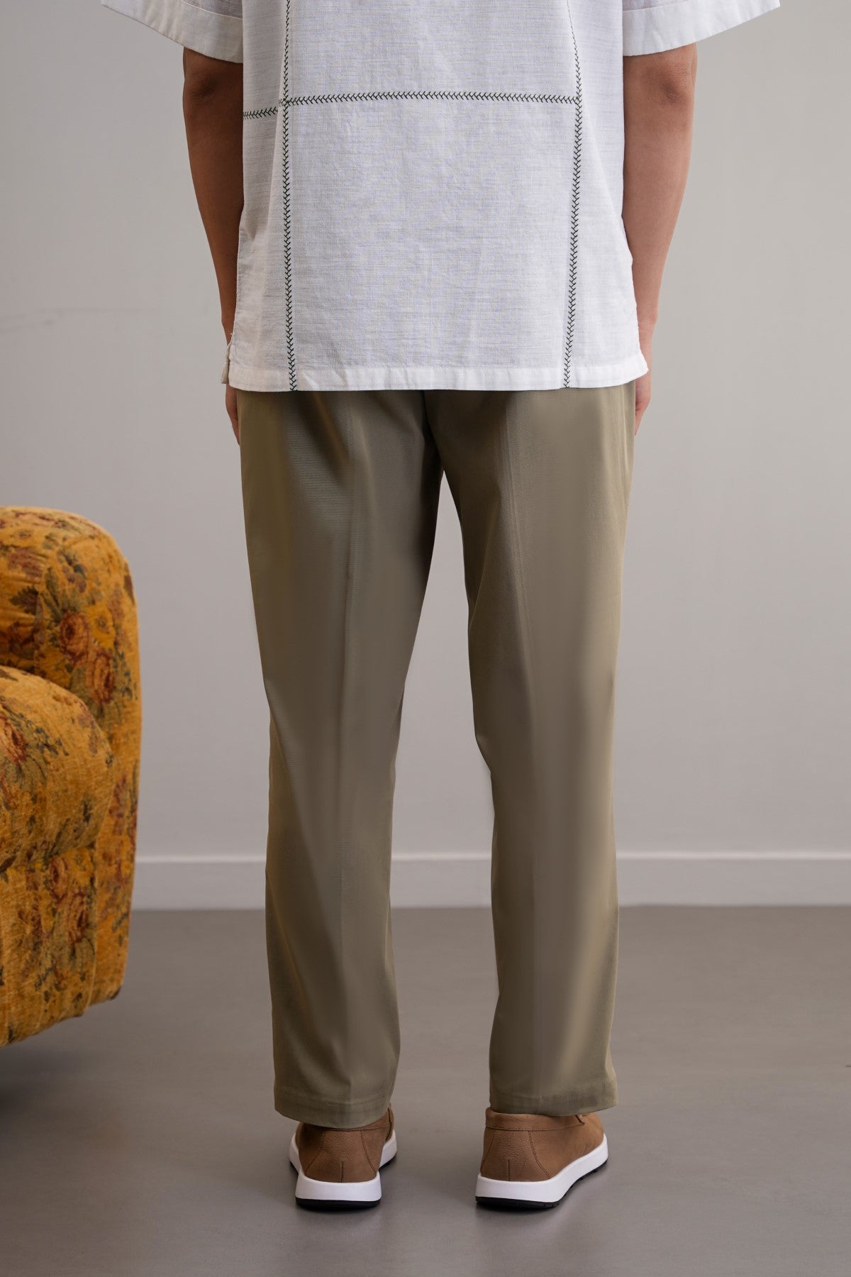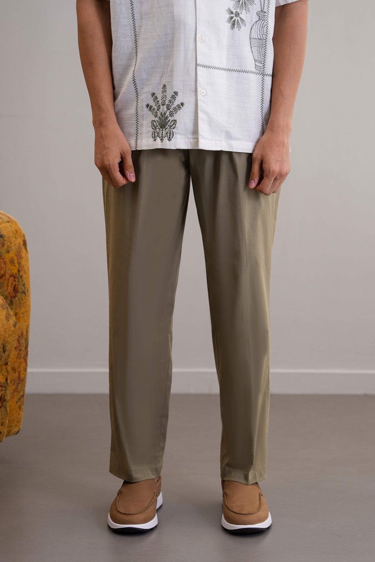 Design details: Cotton pants with an elasticated waist band and drawstring. Front Cross pockets and back bone pockets. These pants have a hook and zipper closure.