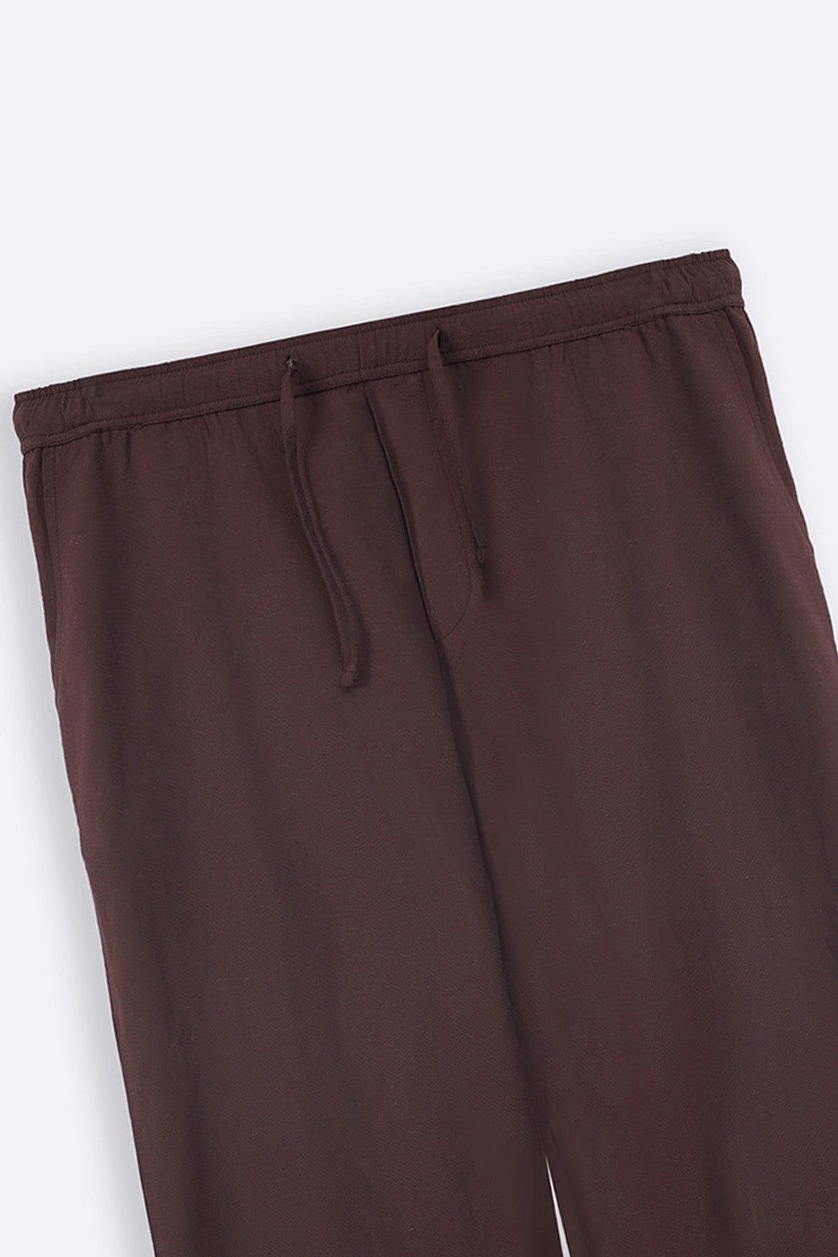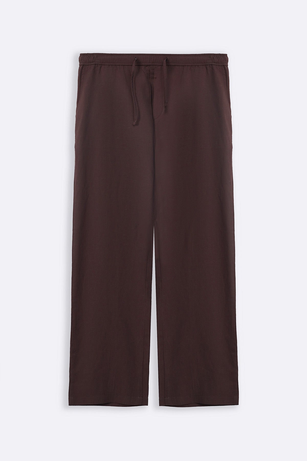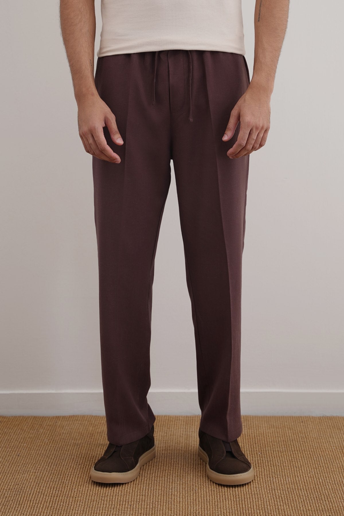Design details: Relaxed trousers with cross pockets and pleats at front. Elasticated waist band with drawstring.