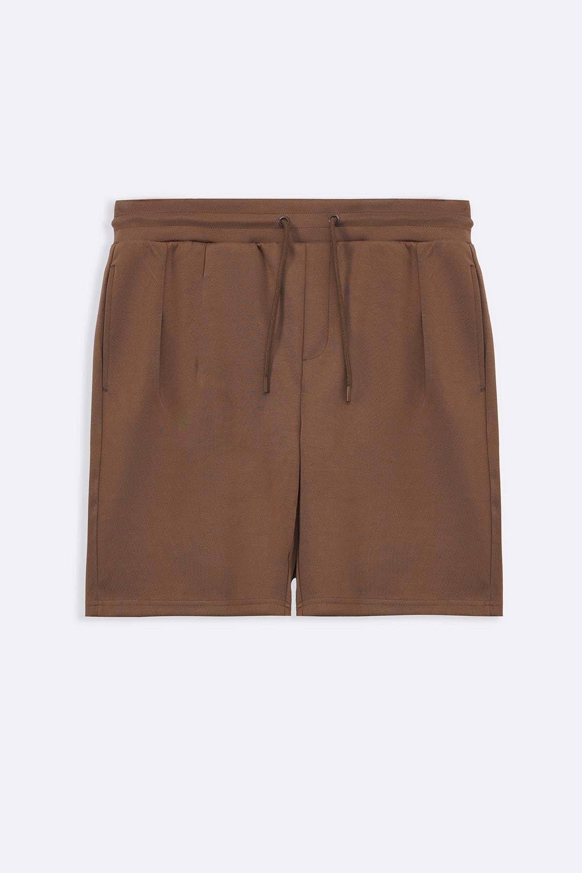 Design details: Pleated neoprene shorts with elasticated waistband and a drawcord.