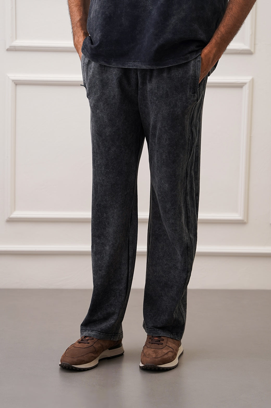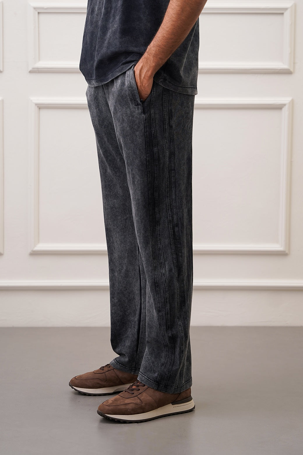 SIDE STRIPED WASHED TROUSERS