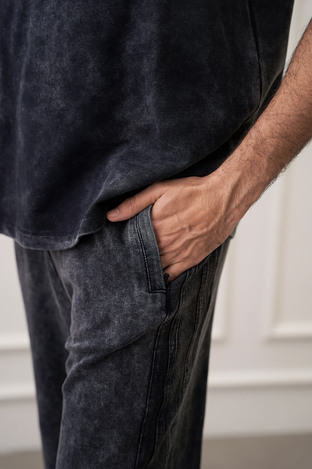 BLACK SIDE STRIPED WASHED TROUSERS