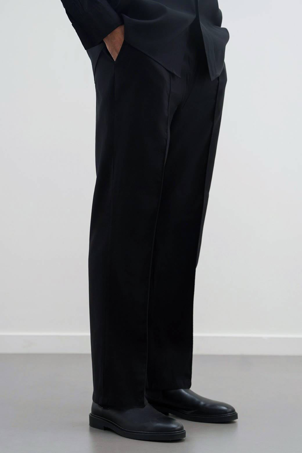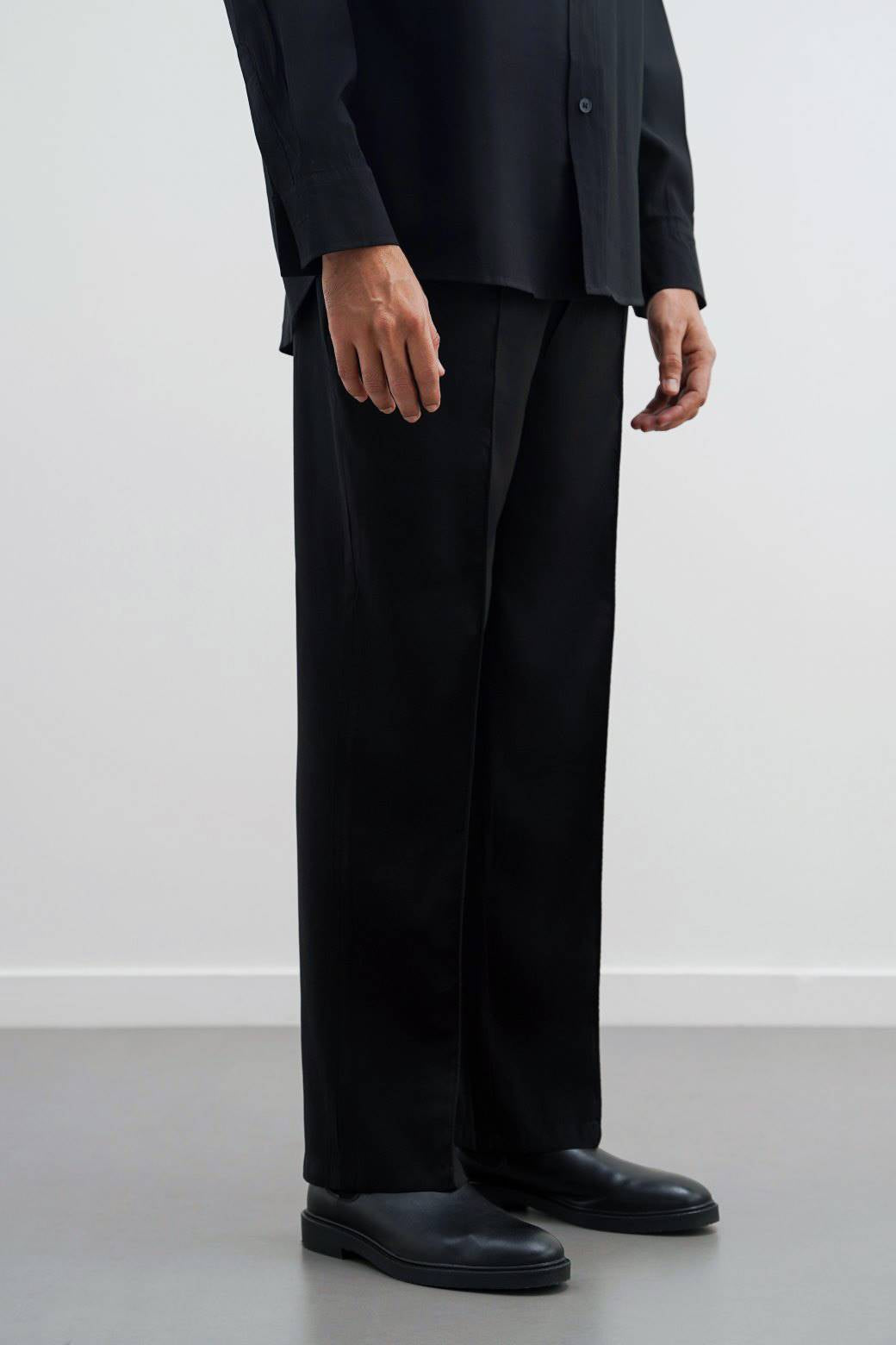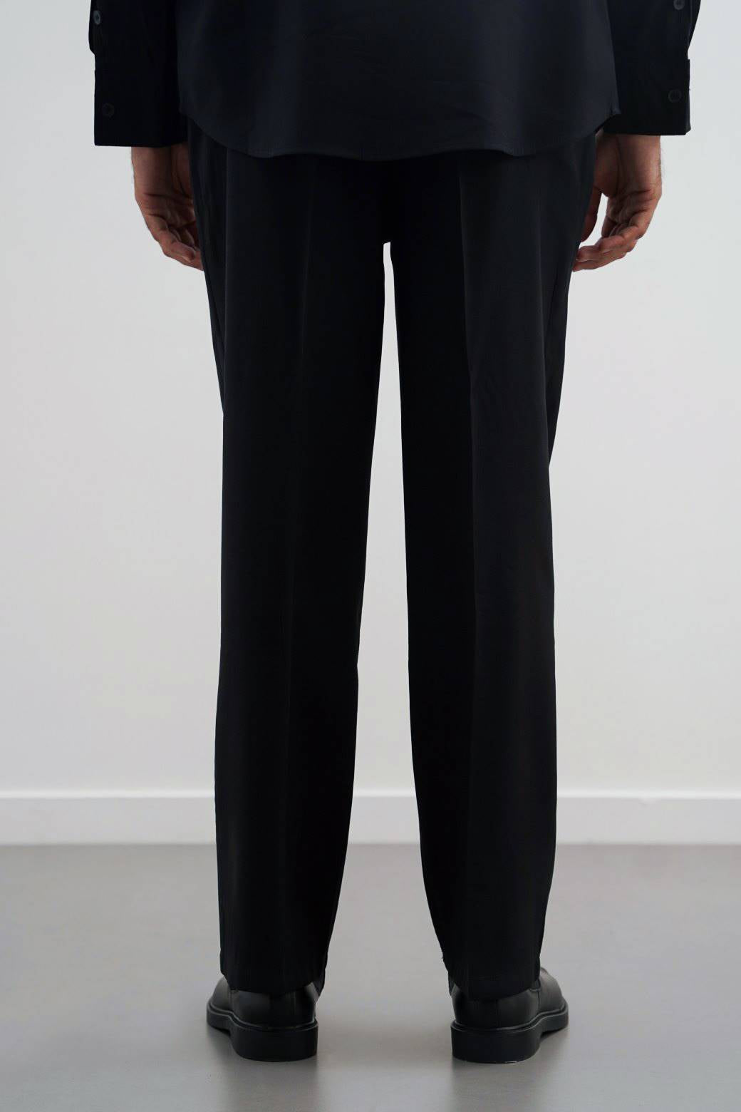Design details: Silk trousers with a front pintuck pleat and an elasticated waist band.