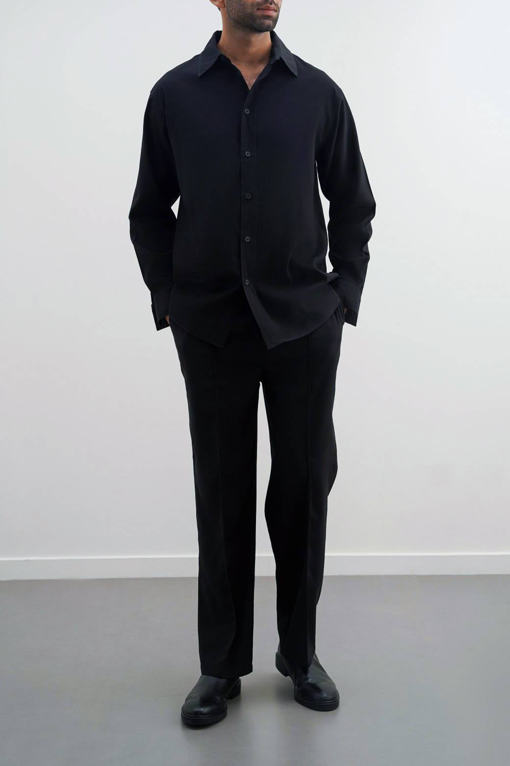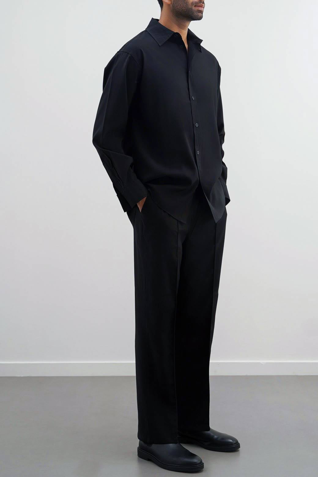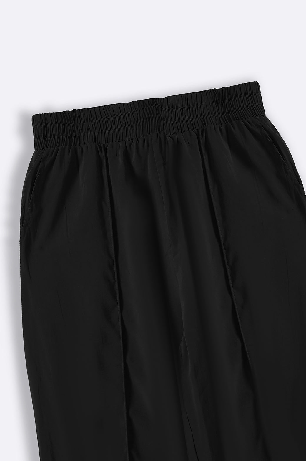 Design details: Silk trousers with a front pintuck pleat and an elasticated waist band.